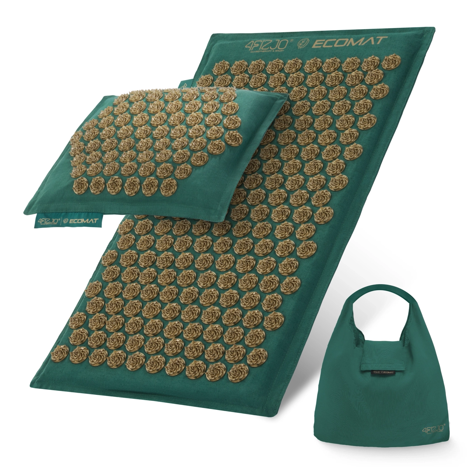 Az ECO 4FIZJO akupresszúrás szőnyeg párnával a legmagasabb minőségű prémium termék. Gyártásához környezetbarát természetes anyagokat használtak fel. A paplanhuzatot 100%-os vászonból varrták. Ez a finom és puha tapintású természetes anyag légáramlást és megfelelő légkeringést biztosít. A kényelmet és a könnyű fekvést vagy ülést a búzahéj és a kókuszrostok biztosítják, amelyek a szőnyeget és a párnát töltik ki.