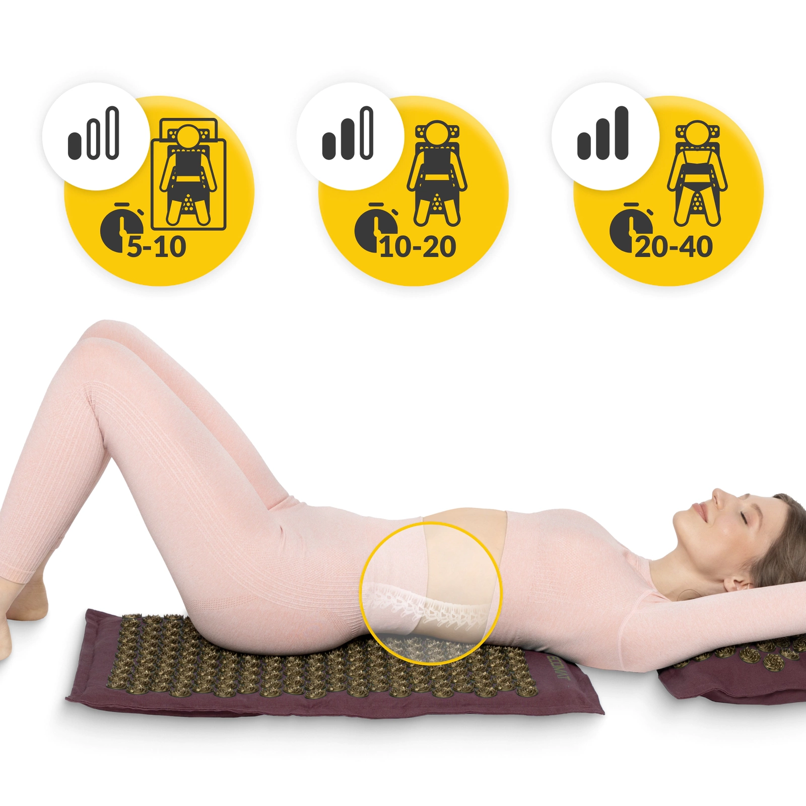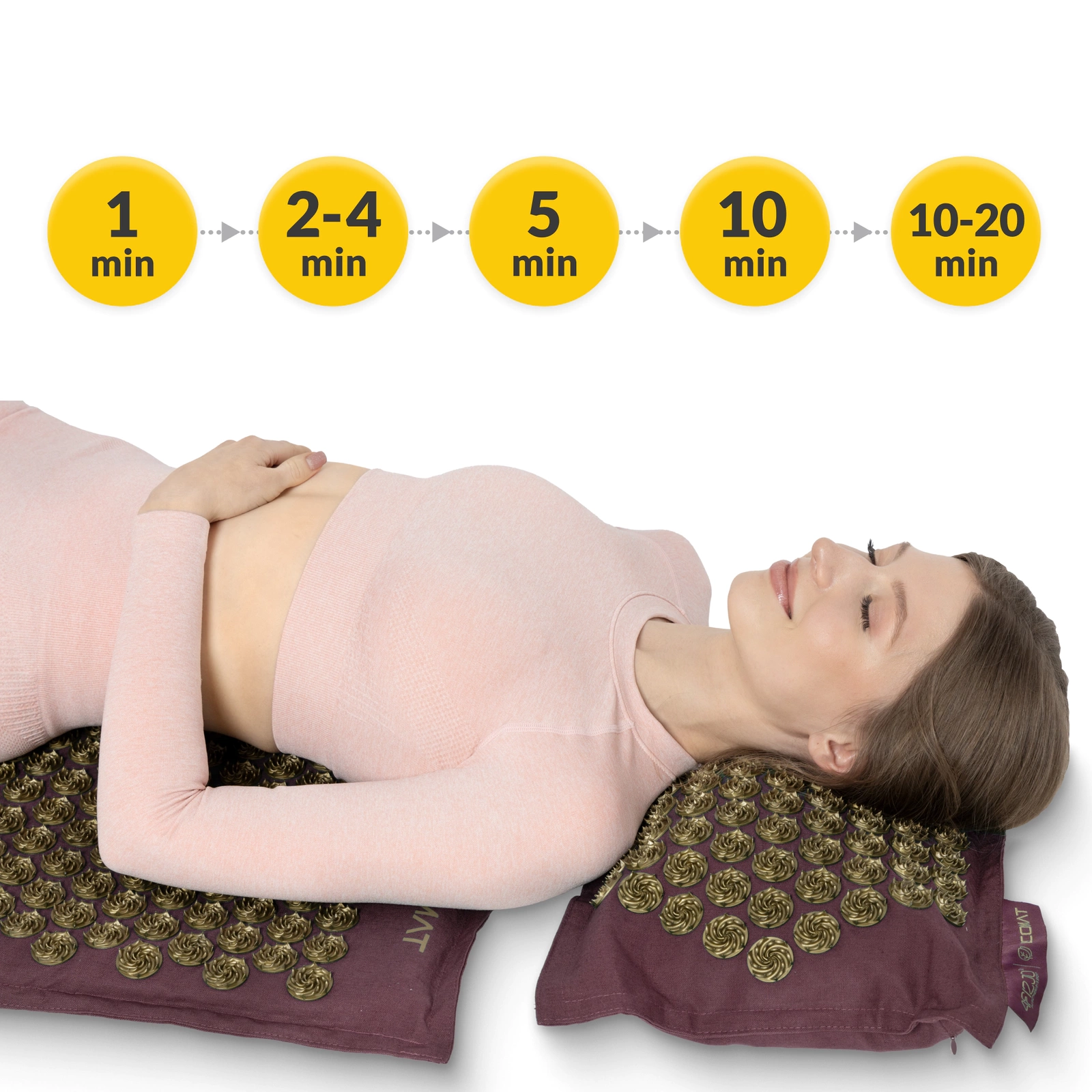 A professzionális akupresszúrás szőnyeg és a terápia használata elsősorban a felhasználó fejlettségi szintjétől függ. A szőnyegen végzett masszázs szokásos időtartama 20 és 40 perc között kell, hogy legyen. A következőkre: