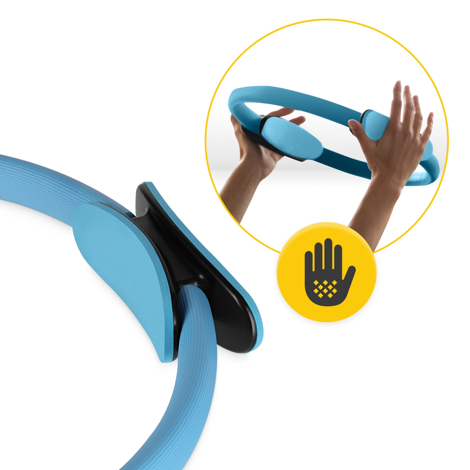 A pilatesgyakorlatok és a mélyizmok erősítése során érdemes beépíteni az edzésbe a 4FIZJO jógagyűrűt, amely nemcsak a koordinációt, a mozgékonyságot és a gyakorlatok kivitelezésének technikáját javítja, hanem tehermentesíti a gerincet, emellett csökkenti annak túlterhelését és a sérülésveszélyt. A gyűrű rendkívül strapabíró felépítésű. Váza üvegszállal megerősített műanyagból készült, amely ellenáll a repedésnek és a deformációnak. A karika teljes felületét kényelmes, EVA habszivacs borítás fedi, amely nemcsak kellemes fogásérzetet nyújt, de védelmet is biztosít a kéznek, a combnak és térdnek az eszköz szorítása közben, így használat közben semmilyen torzulás vagy sérülés nem fordul elő.