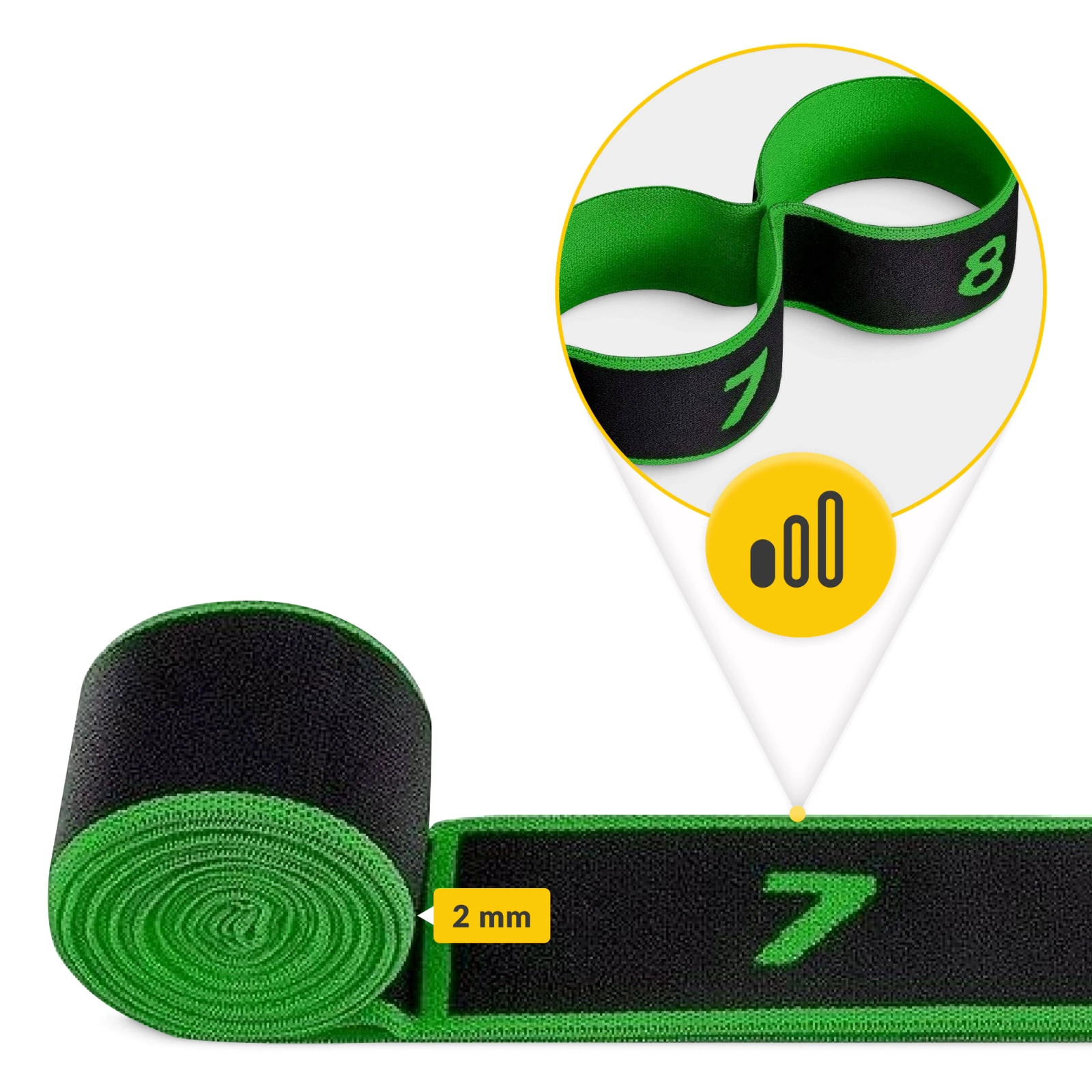 Akár erősítő, akár lazító gyakorlatokat kedvelsz, a 4FIZJO nyújtószalag kiváló választás kezdőknek és haladóknak is. Az ellenállás szintje könnyen szabályozható: a szalag 8 egyenlő részre van osztva. Így pontosan beállíthatod a megfelelő hosszúságot és ellenállást az egyéni hajlékonysági szintedhez. Minél kevesebb hurkot használsz, annál nagyobb az ellenállás – ez lehetővé teszi az intenzívebb edzést.