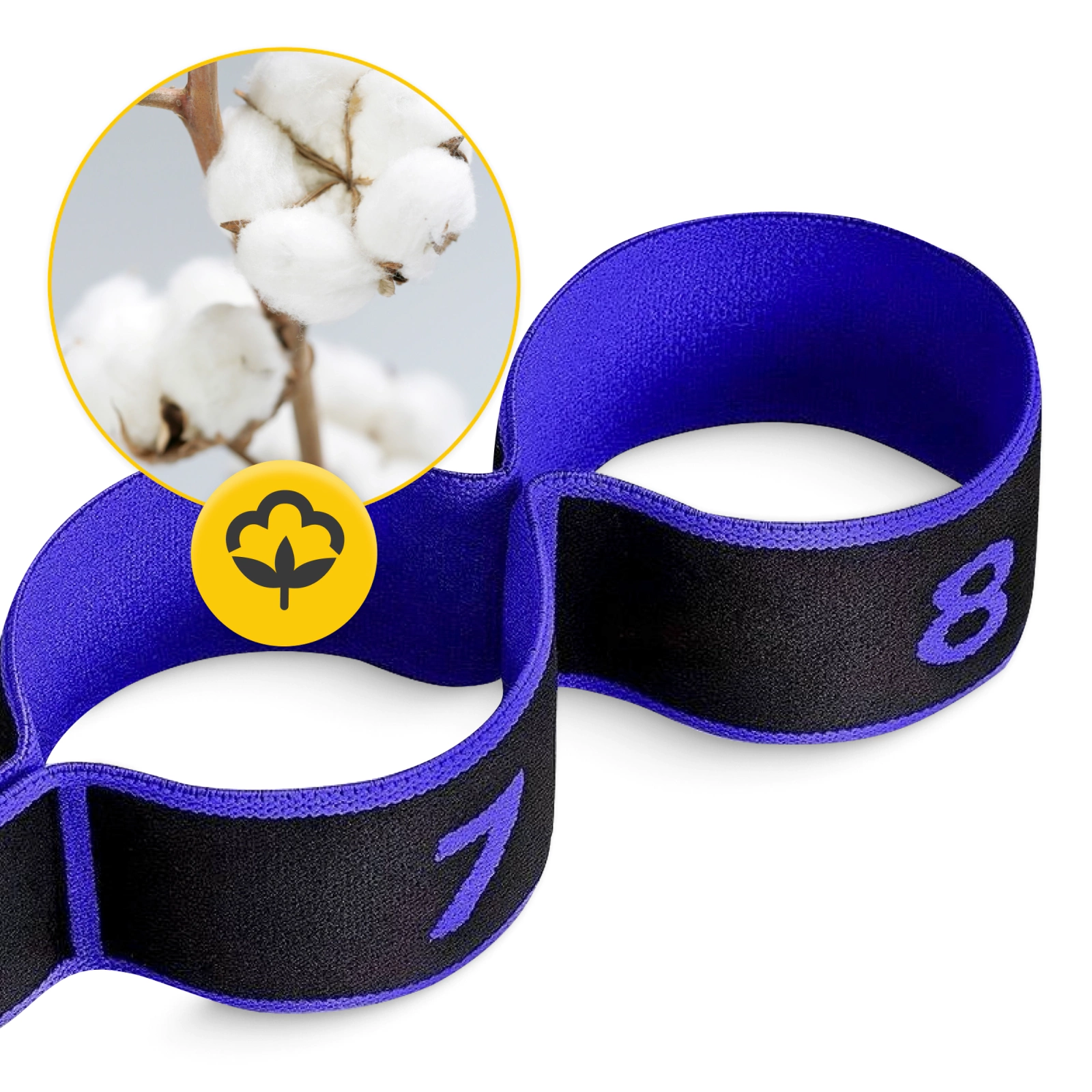 A szalag kiváló rugalmasságát és nyújthatóságát a magas minőségű alapanyagok biztosítják. A pamut és latex kombinációjának köszönhetően a szalag még intenzív használat mellett is megőrzi tulajdonságait. Csökkenti a szakadások, kopások kockázatát. Megnyújtás után visszanyeri eredeti formáját, így ellenáll a deformációnak – ez szabadságot ad az edzéstípus megválasztásában.