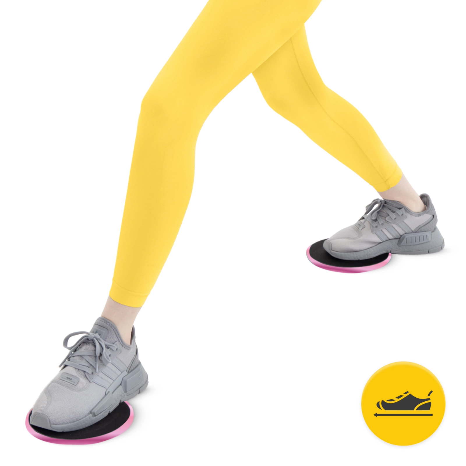 A csúszótárcsák tartós műanyagból készülnek, kétoldalas kialakítással. Az egyik oldal könnyedén siklik a padlón, míg a másik biztos fogást nyújt és stabilitást garantál. A kezedet vagy a lábadat a tárcsára helyezve különböző irányokba végezhetsz csúsztató mozgásokat bármilyen felületen (kivéve gumiborítású padló). Nagy előnyük, hogy nem igényelnek extra súlyokat – a saját testsúlyoddal dolgozol, így nem terheled túl az ízületeket.