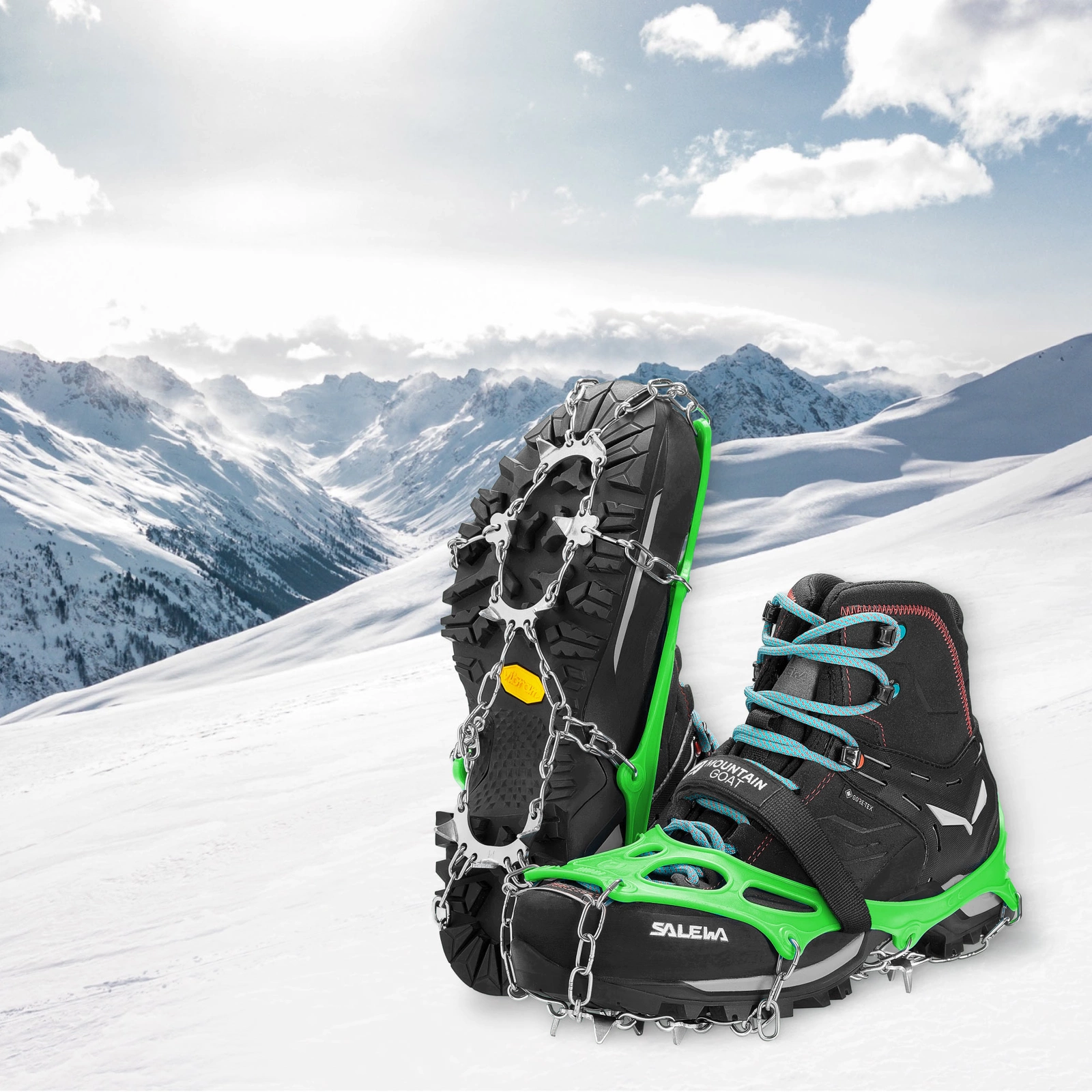 Aktív téli nyaralást tervez a hegyekben? Szeret télen a szabadban lenni? Ügyeljen arra, hogy vigyázzon a biztonságára! Az erdei séták vagy a havas hegyi ösvények során könnyen elveszítheti az egyensúlyát. Könnyen csökkentheted az esés és a sérülés kockázatát. Válaszd a MOUNTAIN GOAT prémium túra- és téli bakancsos kramponokat.