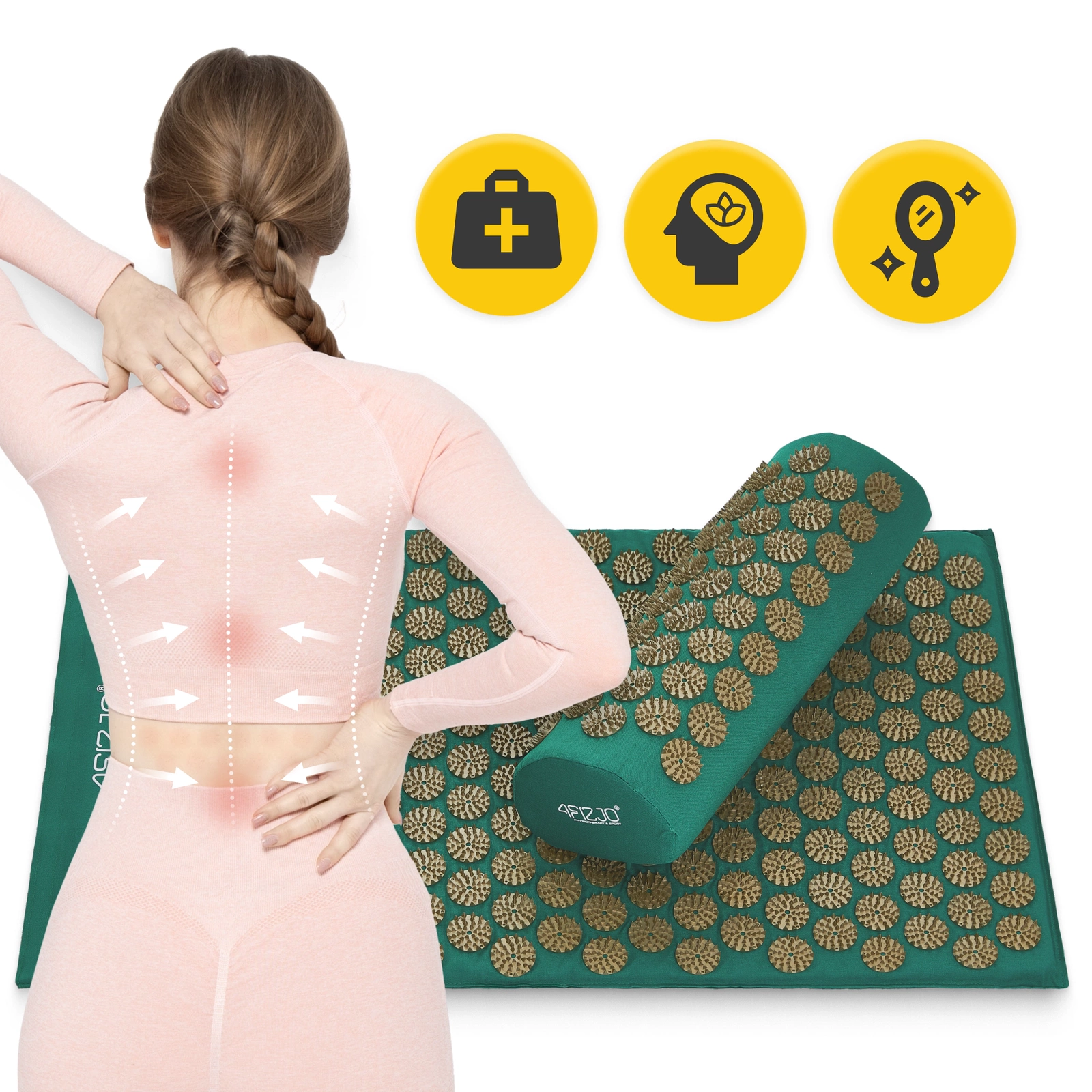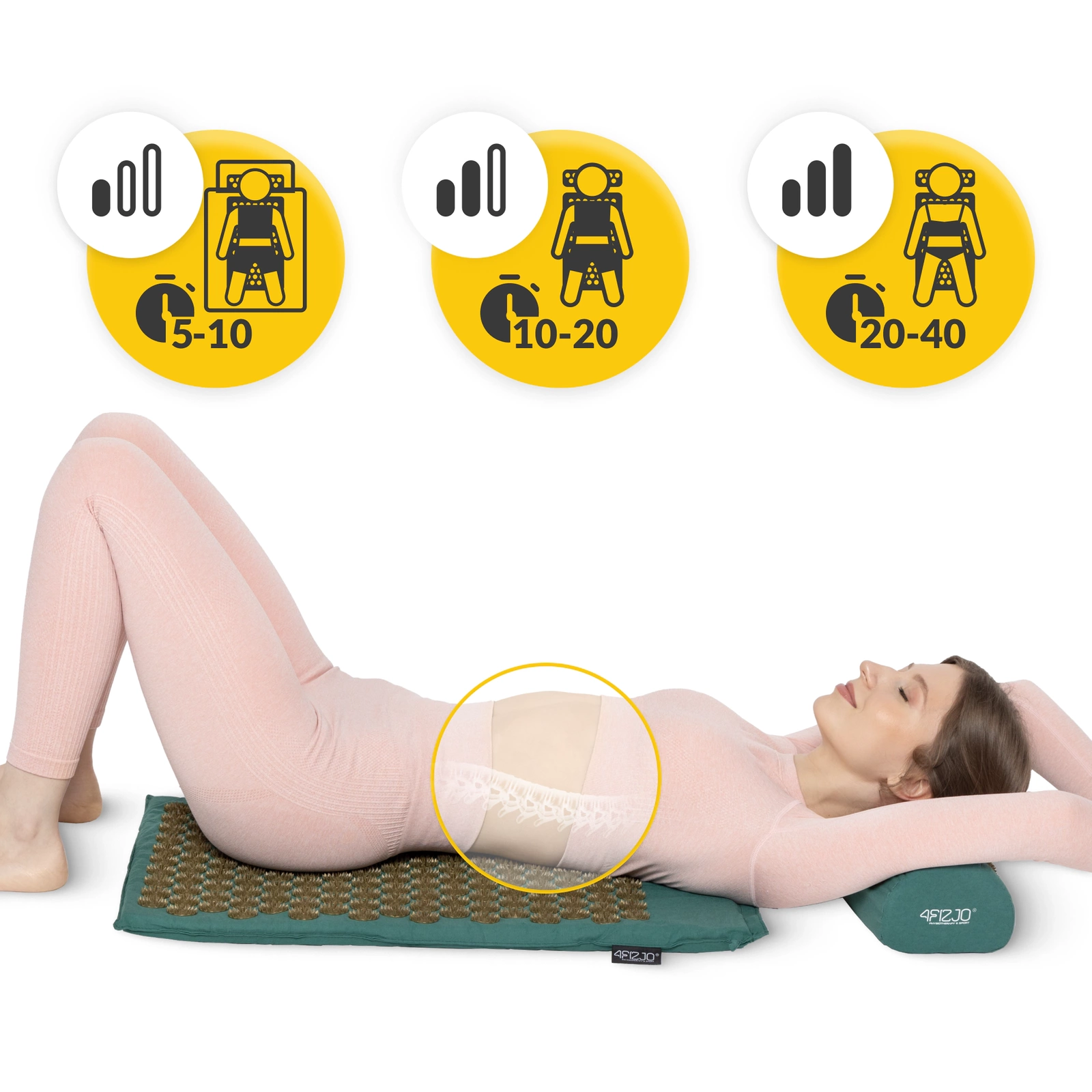 Akupresszúrás szőnyeg párnával, sötétzöld