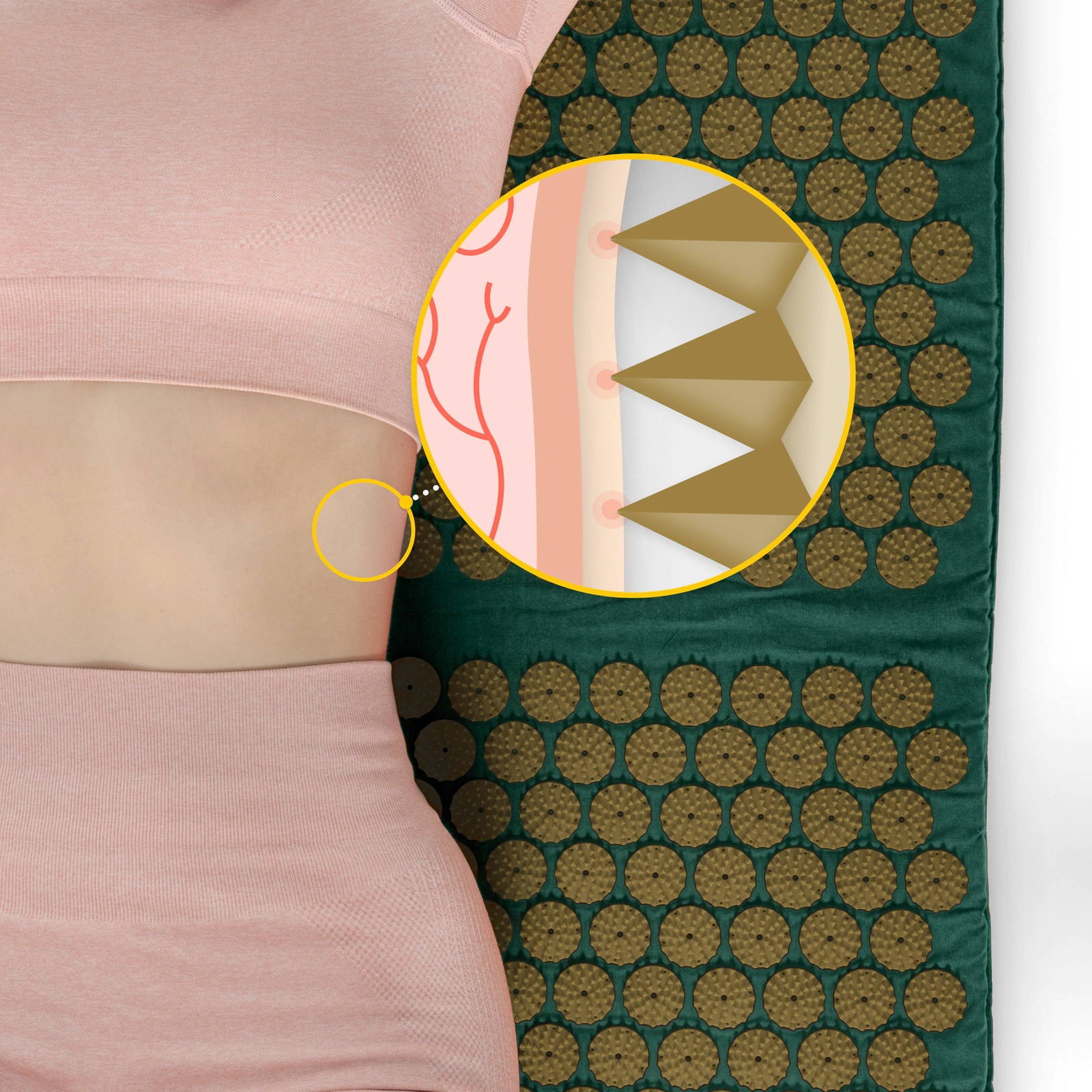 Nagy akupresszúrás szőnyeg párnával, XL, sötétzöld
