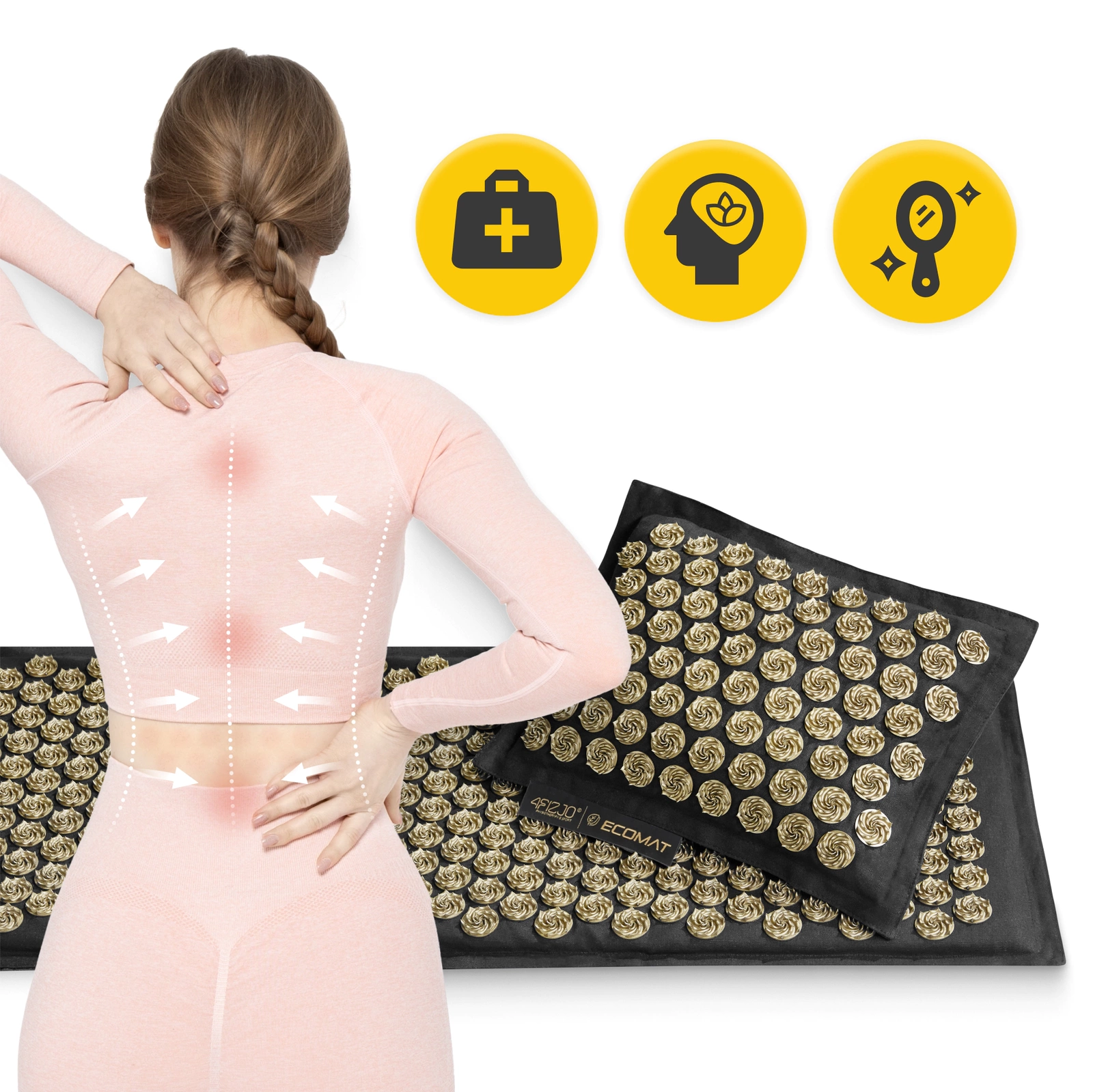 ECO akupresszúrás matrac párnával, XL, fekete-arany