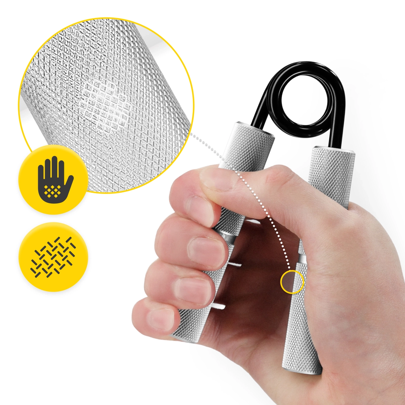 A kézügyességre napi szinten szükségünk van. Erős fogás nélkül még a bevásárlás is nehéz, nem is beszélve az olyan megterhelőbb tevékenységekről, mint a testmozgás vagy a fizikai munka. Pedig gyakran elfelejtjük, hogy a kezeknek is szükségük van edzésre és megfelelő ápolásra. A Fém kéz, tenyér szorító 4FIZJO kiválóan alkalmas a fogás erősítésére, a váll- és csuklóhajlító izmok fejlesztésére. Mi több, nagyszerű rehabilitációs formaként is működik olyan sérülések vagy traumák után, amelyek gyengíthetik a markolat erejét. Már a rendszeres gyakorlással is javíthatod a kezed stabilitását és fittségét.