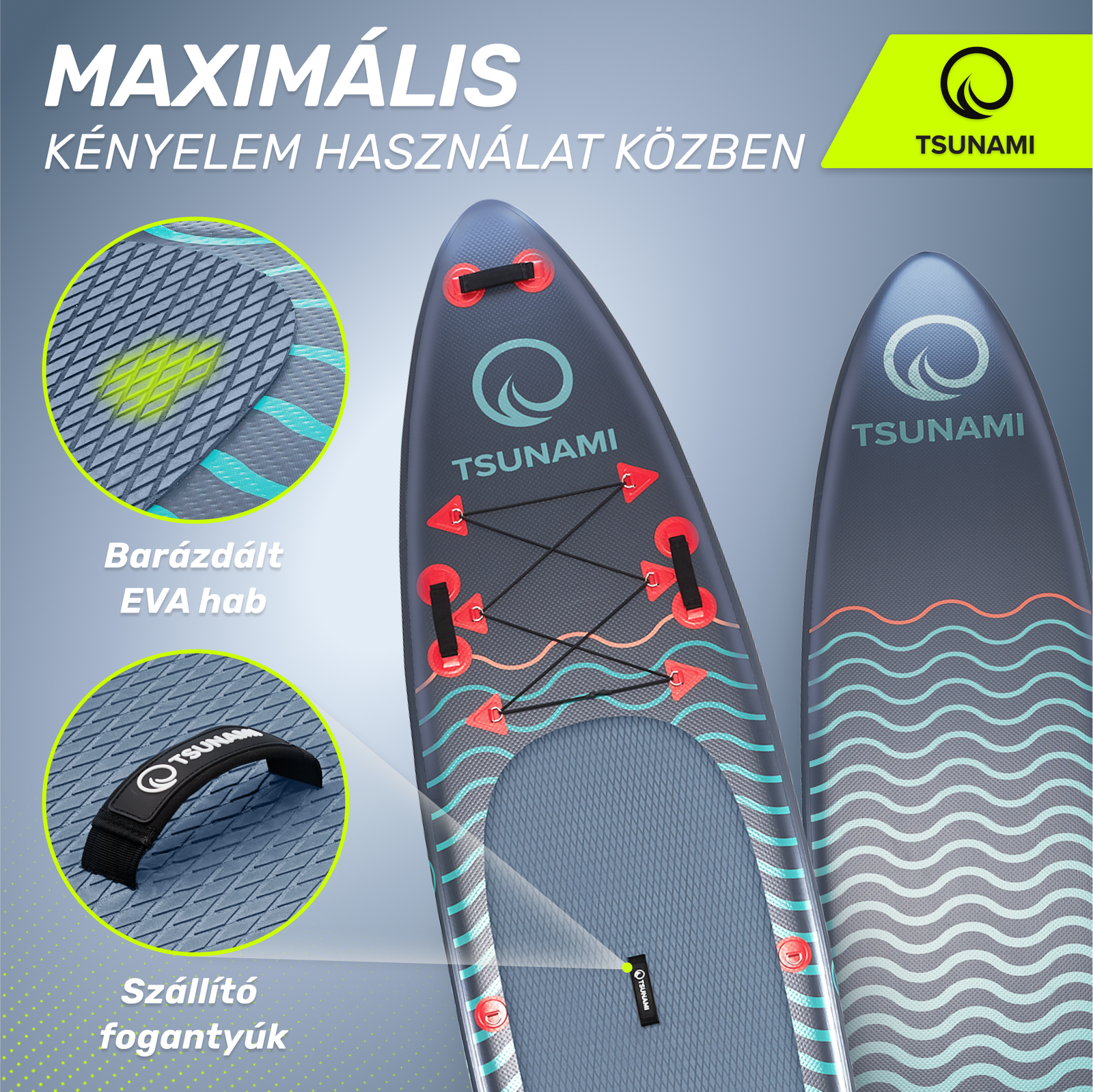 A TSUNAMI SUP deszka evezővel egy sokoldalú vízisport-felszerelés. Ismerkedj meg a paramétereivel, hogy megtaláld a számodra tökéletes terméket.