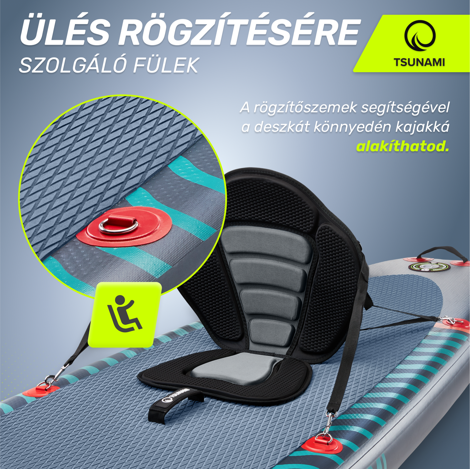 A csomag tartalmaz állítható dupla evezőt, biztonsági zsinórt és ülést is, így további költségek nélkül élvezheted az első SUP kalandodat.