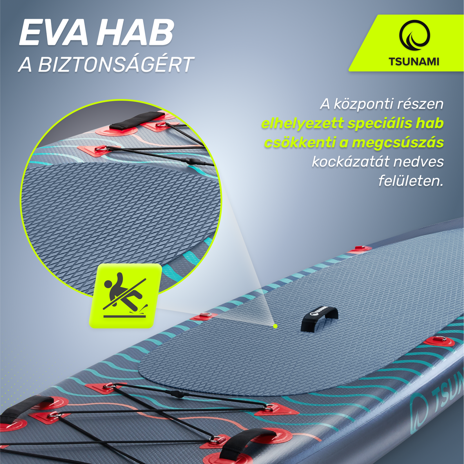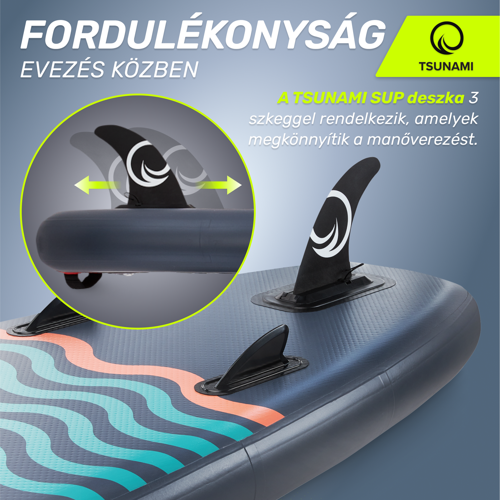 A 3 uszonynak és az optimalizált pengének köszönhetően a TSUNAMI SUP deszka könnyen fordul, hatékonyan evezhető és jól irányítható.