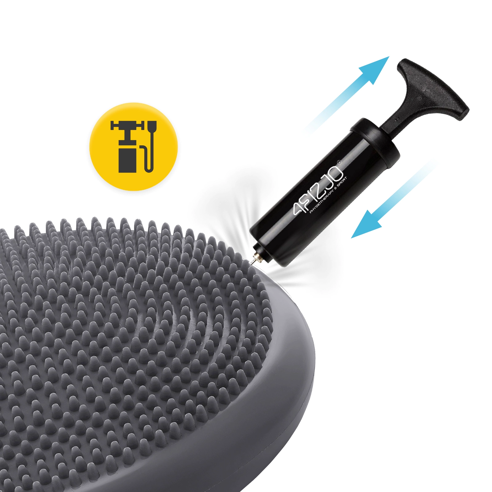 Hogyan kell helyesen felfújni a rehabilitációs párnát? Ahhoz, hogy erre a kérdésre választ adjunk, először érdemes megvizsgálni, hogy milyen szerepet tölt be a szenzomotoros korong a gyakorlatok során. Legyen szó ülésről, állásról, térdelésről vagy fekvőtámaszról, a párna legfontosabb feladata az, hogy kibillentse a testet az egyensúlyából. Éppen ezért a felfújás során két dolgot szükséges szem előtt tartani. Először is, fújd fel annyira, hogy amikor ráállsz, a talpadne érintkezzen a talajjal, azaz a párna biztosítsa a megfelelő instabilitást. Másodszor, ne fújd túl a párnát. Ha túlságosan fel van pumpálva, elveszíti a jellegzetes formáját, és korong helyett inkább labdára fog hasonlítani, ami csökkenti a hatékonyságát a gyakorlatok végzése közben.