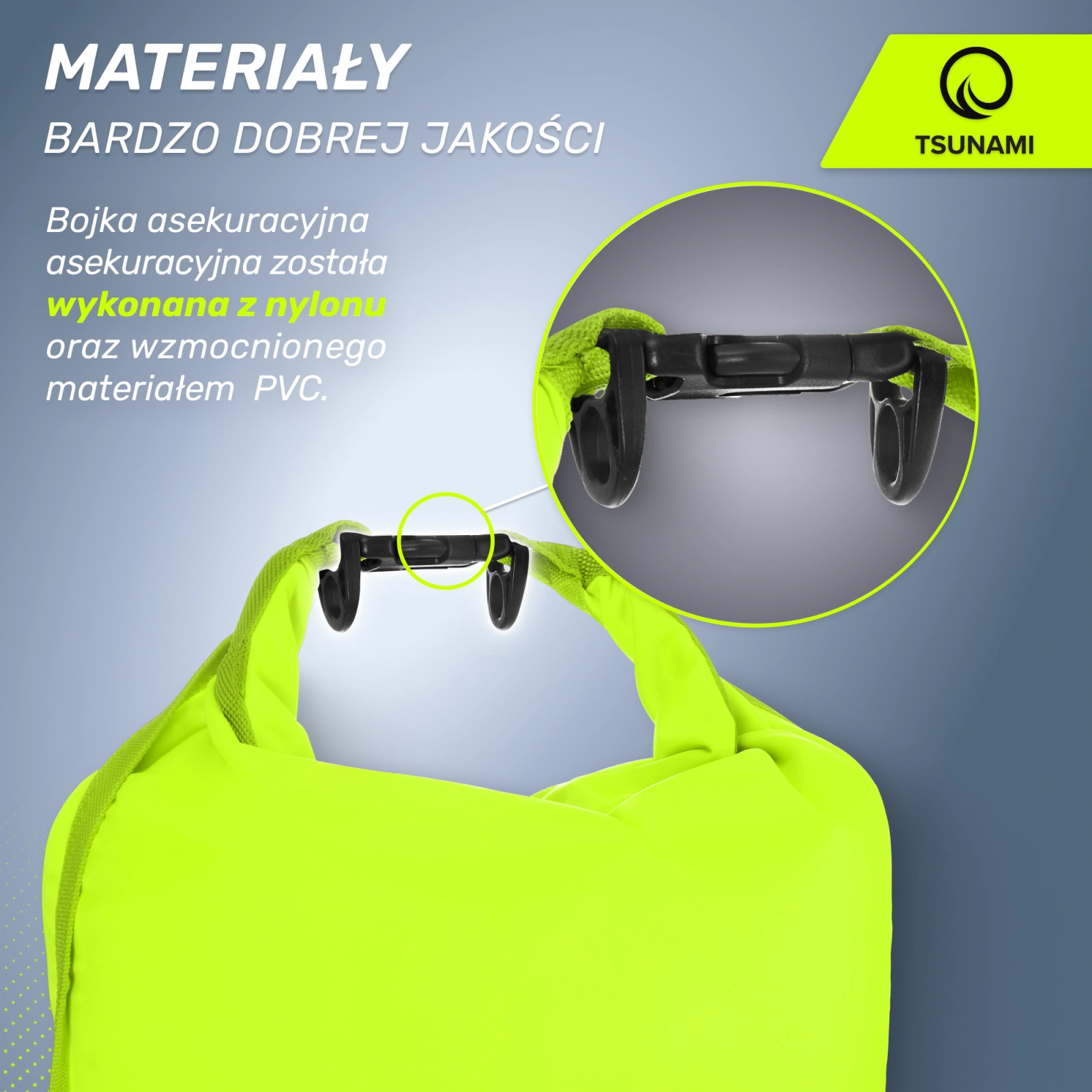 ✅ A TSUNAMI bója megerősített PVC anyagból készült, amely magas ellenállást biztosít a töréssel vagy szakadással szemben.