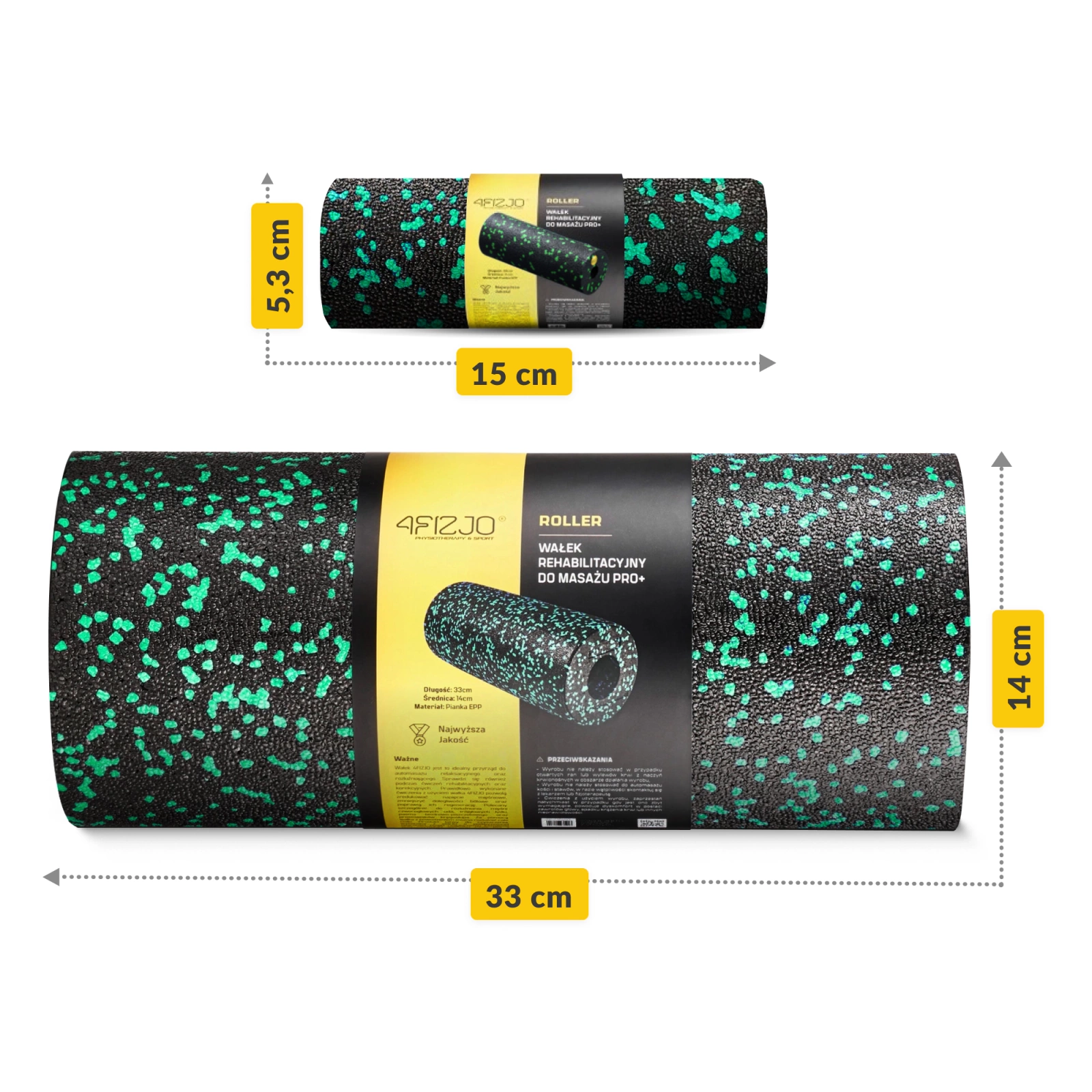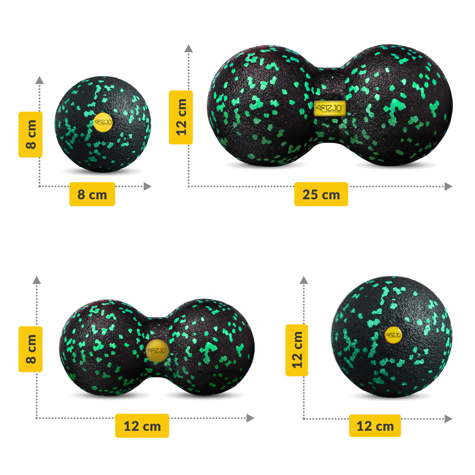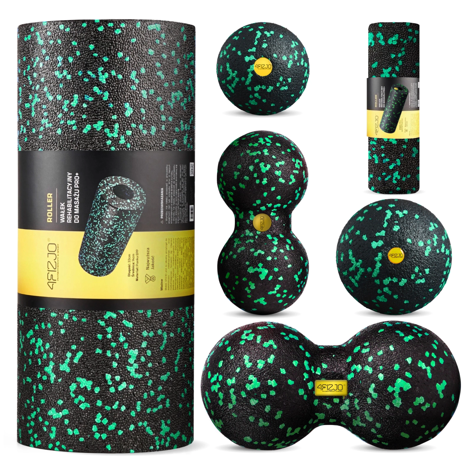 ✔️ Készletben: 33 cm-es görgő, MINI 15 cm-es görgő, 8 és 12 cm-es masszázsgolyók, dupla 8 és 12 cm-es golyók.