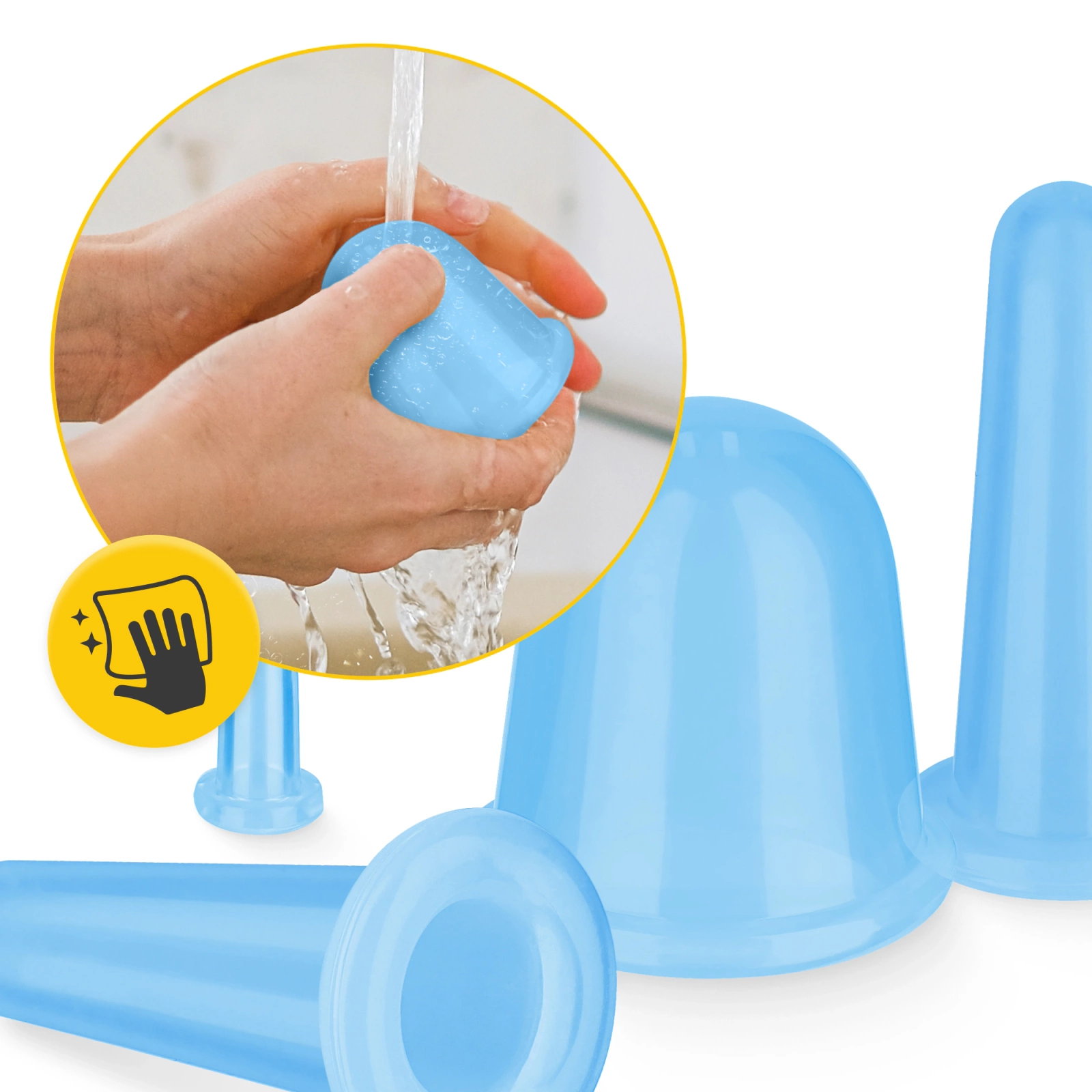 ✅ A szilikon köpölyözők egyszerűen használhatók. Alacsony szívóerejük miatt nem okoznak véraláfutást, ami különösen fontos az arc területén.