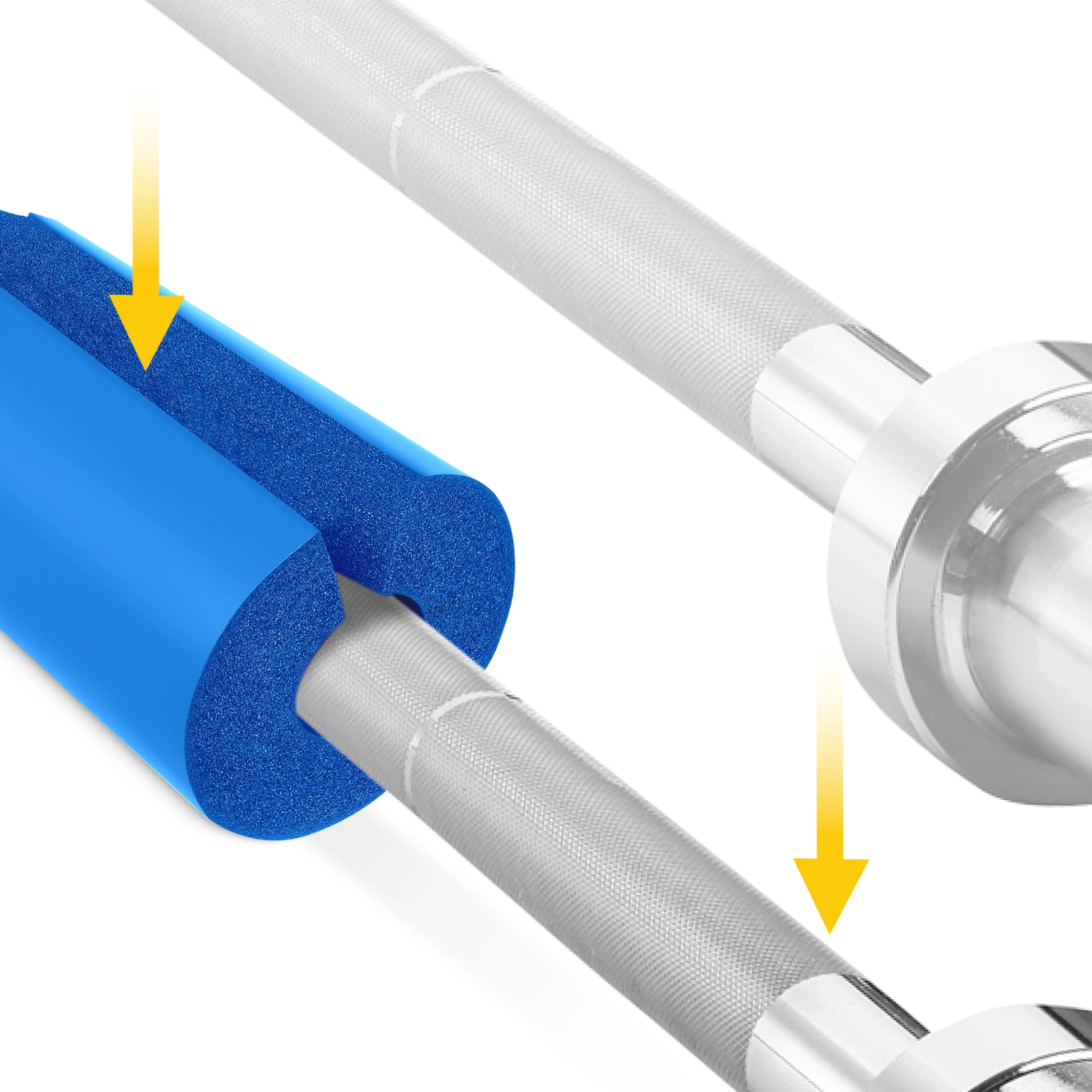 ▶️ A csomagban található rögzítő pántok gondoskodnak arról, hogy a védőpárna ne mozduljon el a súlyzórúdról edzés közben.
