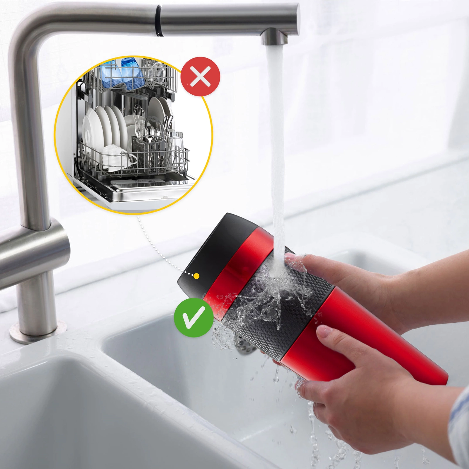 A teázáshoz és kávézáshoz készült MOUNTAIN GOAT TRAVEL hőszigetelt bögre kézi mosásra alkalmas. Sima, rozsdamentes acél felülete könnyen tisztán tartható, és szükség esetén a szilikon elemek egyszerűen leválaszthatók a fém részekről, hogy alaposan el lehessen őket mosni.