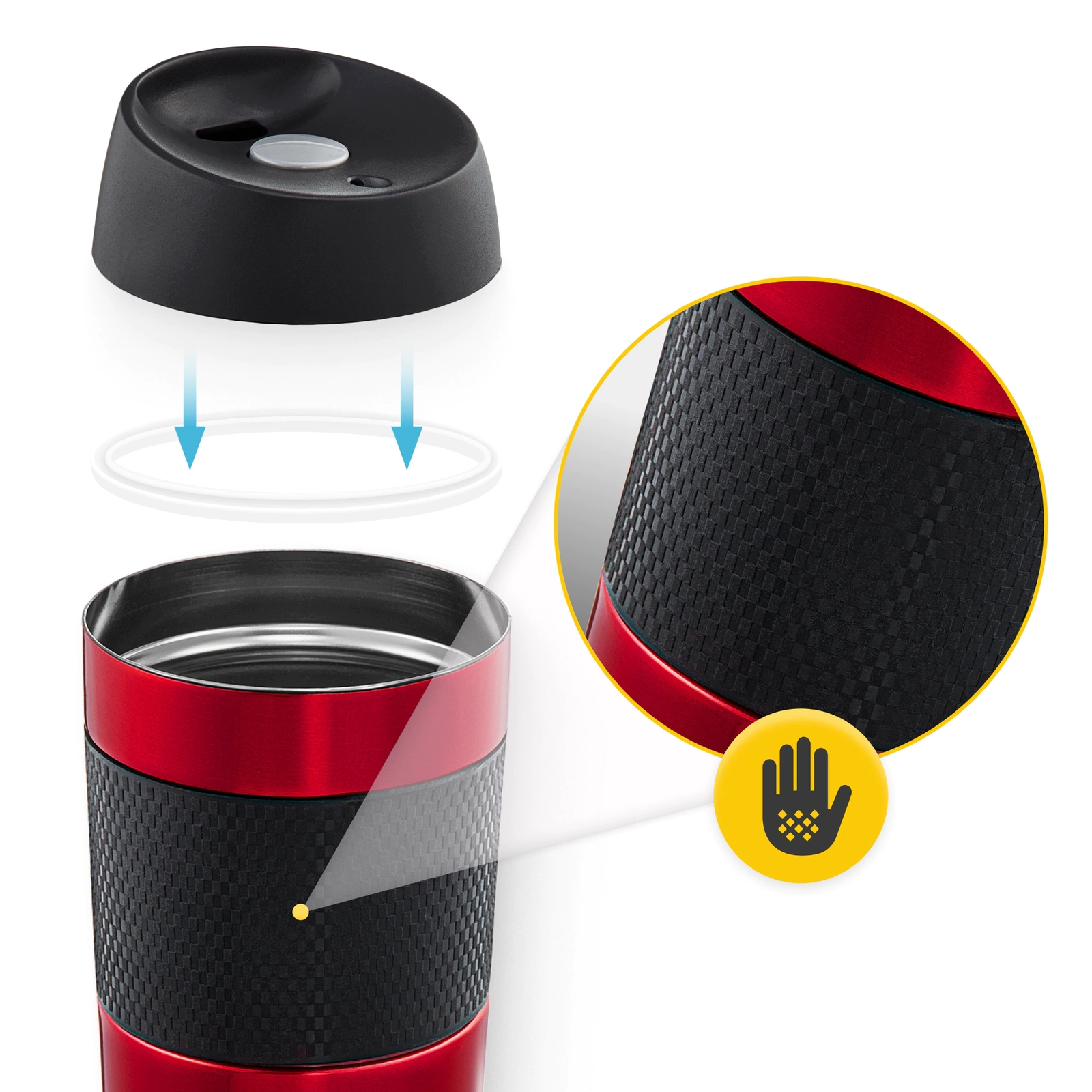 A hőtartó bögre tökéletes megoldás azoknak is, akik otthonról dolgoznak. Öntsd bele forró italodat a bögrébe, és helyezd nyugodtan az asztalra. Nyomógombos zárja lezárja a bögre száját, így nem ömlik ki az ital, és nem áztatja el sem a számítógépet, sem a papírokat.