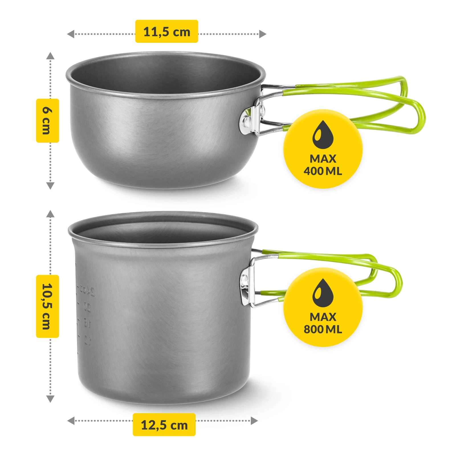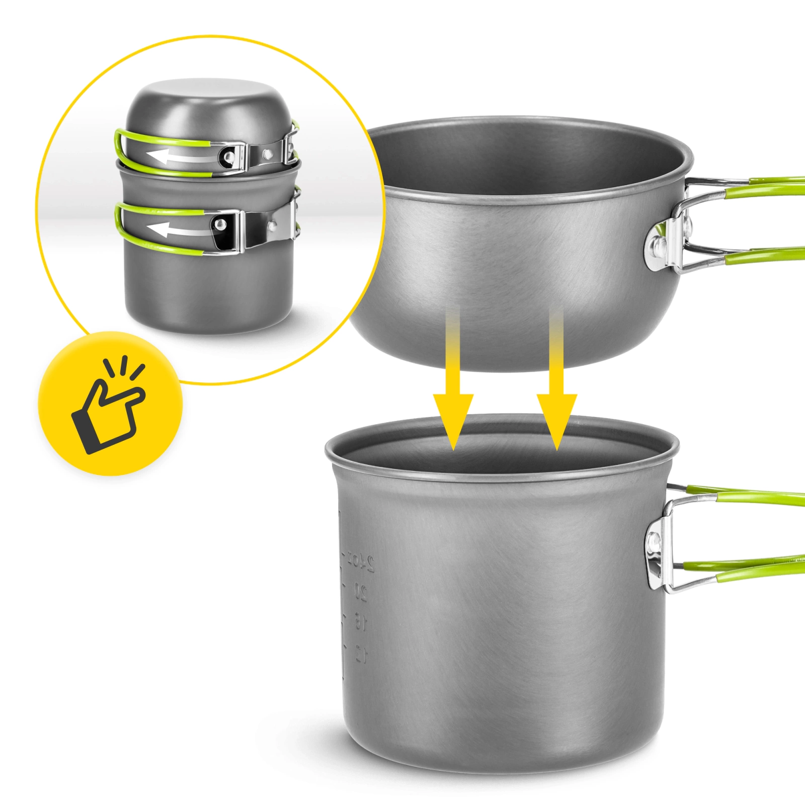 kompakt méretének és könnyű kialakításának köszönhetően ez a készlet tökéletes az utazáshoz, kevés helyet foglal a hátizsákodban. Ideális azok számára, akik ízletes ételeket szeretnének fogyasztani a terepen anélkül, hogy nehéz edényeket kell cipelni.
