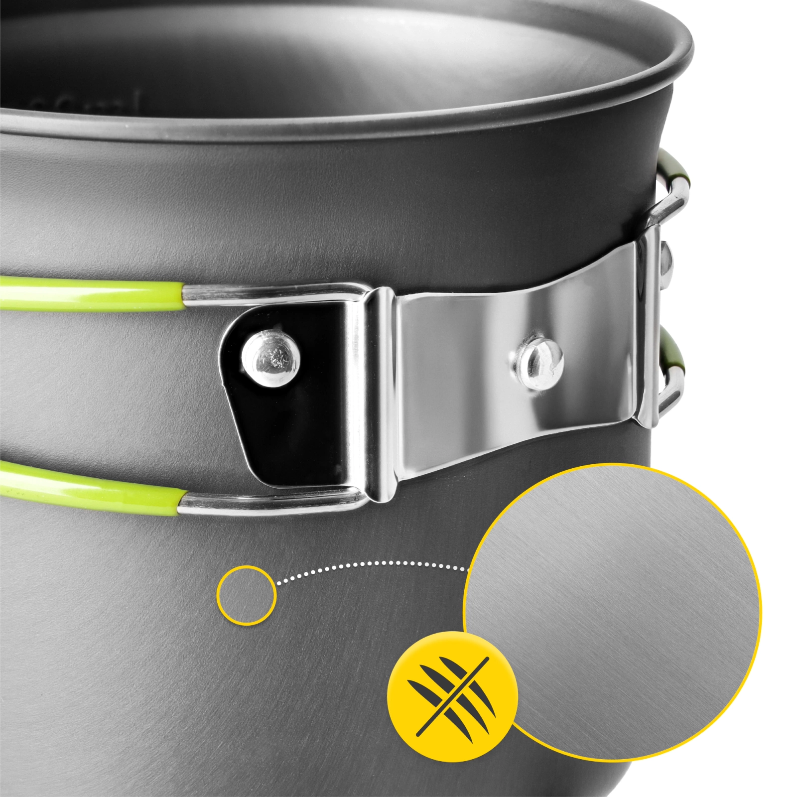 A MOUNTAIN GOAT összecsukható turista edénykészlet a legjobb minőségű anyagokból készült, biztonságos használatra. könnyű és tartós eloxált alumíniumból készültek. Tartós, ellenáll a sérüléseknek és a karcolásoknak.