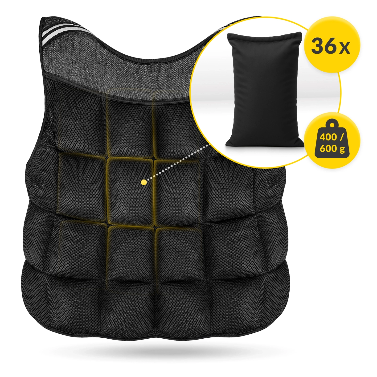 A 20 kg súlyozott edző mellény ideális azok számára, akik erősíteni szeretnék az izmaikat és javítani a fittségüket. Ez a megfelelő sporteszköz arra is alkalmas, hogy növelje a gyakorlatok intenzitását. Emellett a súlymellény viselése nagyon jó stabilizációt biztosít például súlyok emelésekor. A súlymellénnyel fekvőtámaszt, húzódzkodást vagy súlyemelést végezhet. Küzdősportokhoz és edzésekhez is jól használható:
