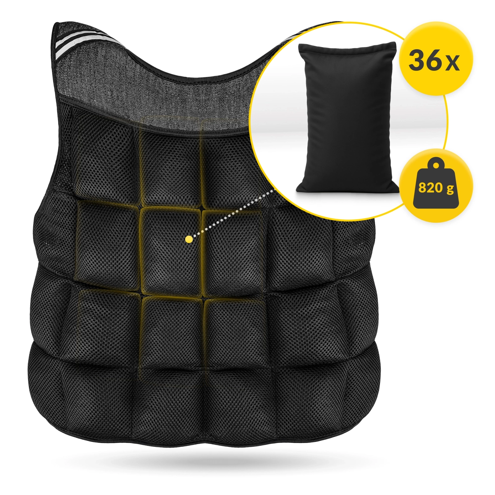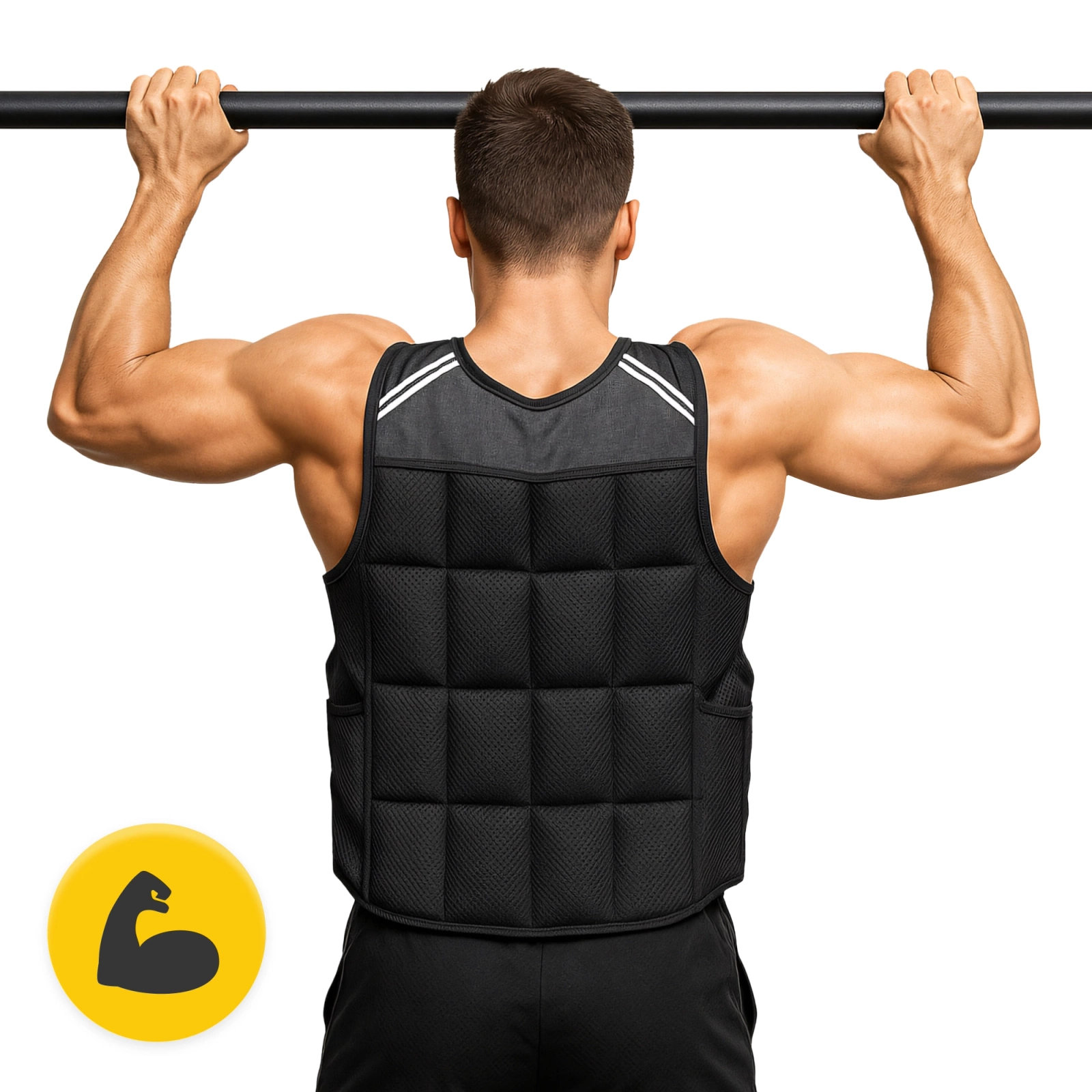 A 30 kg súlyozott edző mellény ideális azok számára, akik erősíteni szeretnék az izmaikat és javítani a fittségüket. Ez a megfelelő sporteszköz arra is alkalmas, hogy növelje a gyakorlatok intenzitását. Emellett a súlymellény viselése nagyon jó stabilizációt biztosít például súlyok emelésekor. A súlymellénnyel fekvőtámaszt, húzódzkodást vagy súlyemelést végezhet. Küzdősportokhoz és edzésekhez is jól használható: