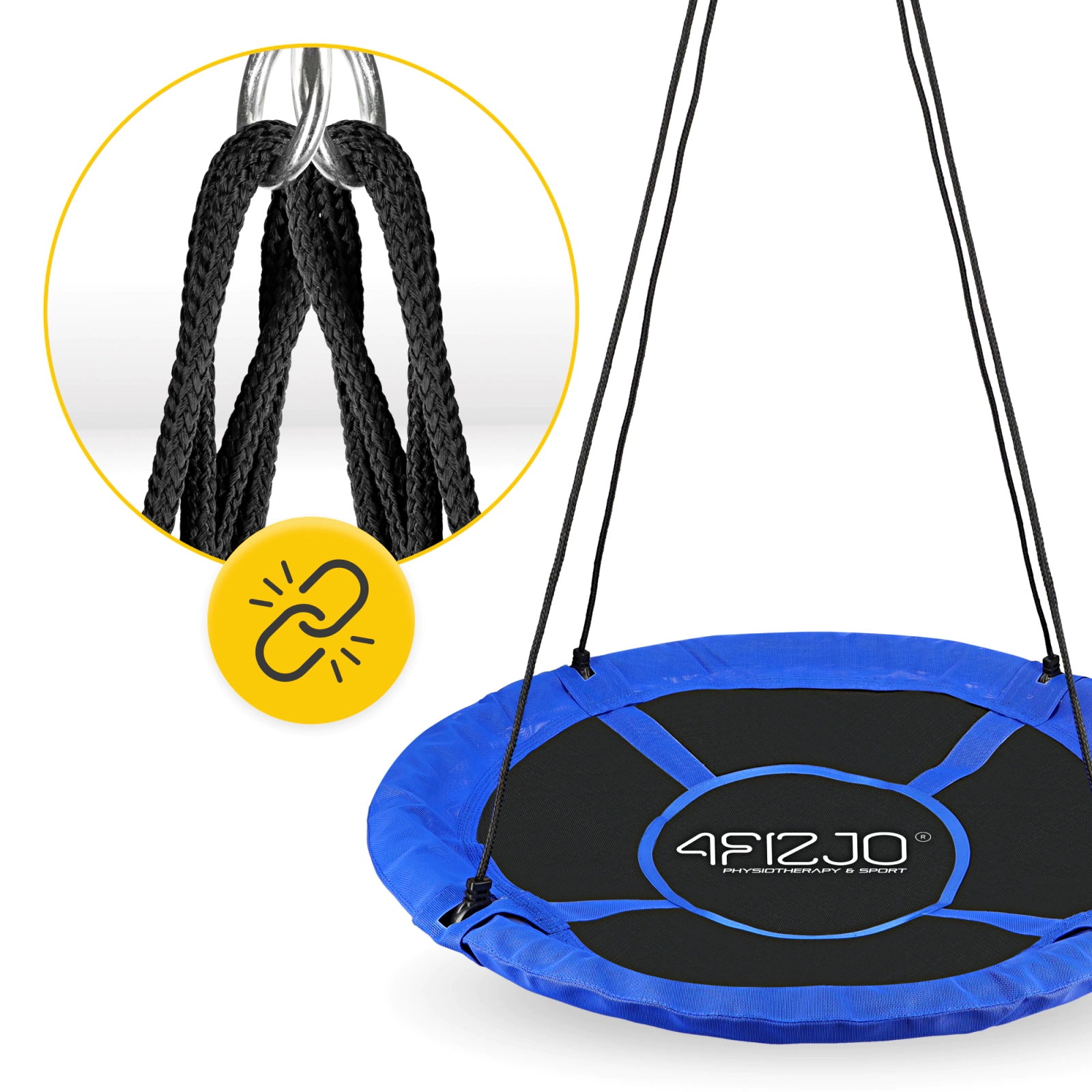 A 4FIZJO gólyafészek kerti hinta a legjobb minőségű anyagokból készült. A nagy, fészekre emlékeztető kerek üléskomfort és kényelmet biztosít játék és pihenés közben. Ezenkívül az erős nejlon kötél biztonságot és stabilitást nyújtanak hintázás közben. Mi több, az állítható hosszuknak köszönhetően egyszerű telepítést tesznek lehetővé különböző magasságokban. Ez teszi a gyermek kerti hintát minden kert, terasz vagy hátsó udvari játszótér sokoldalú kiegészítőjével.