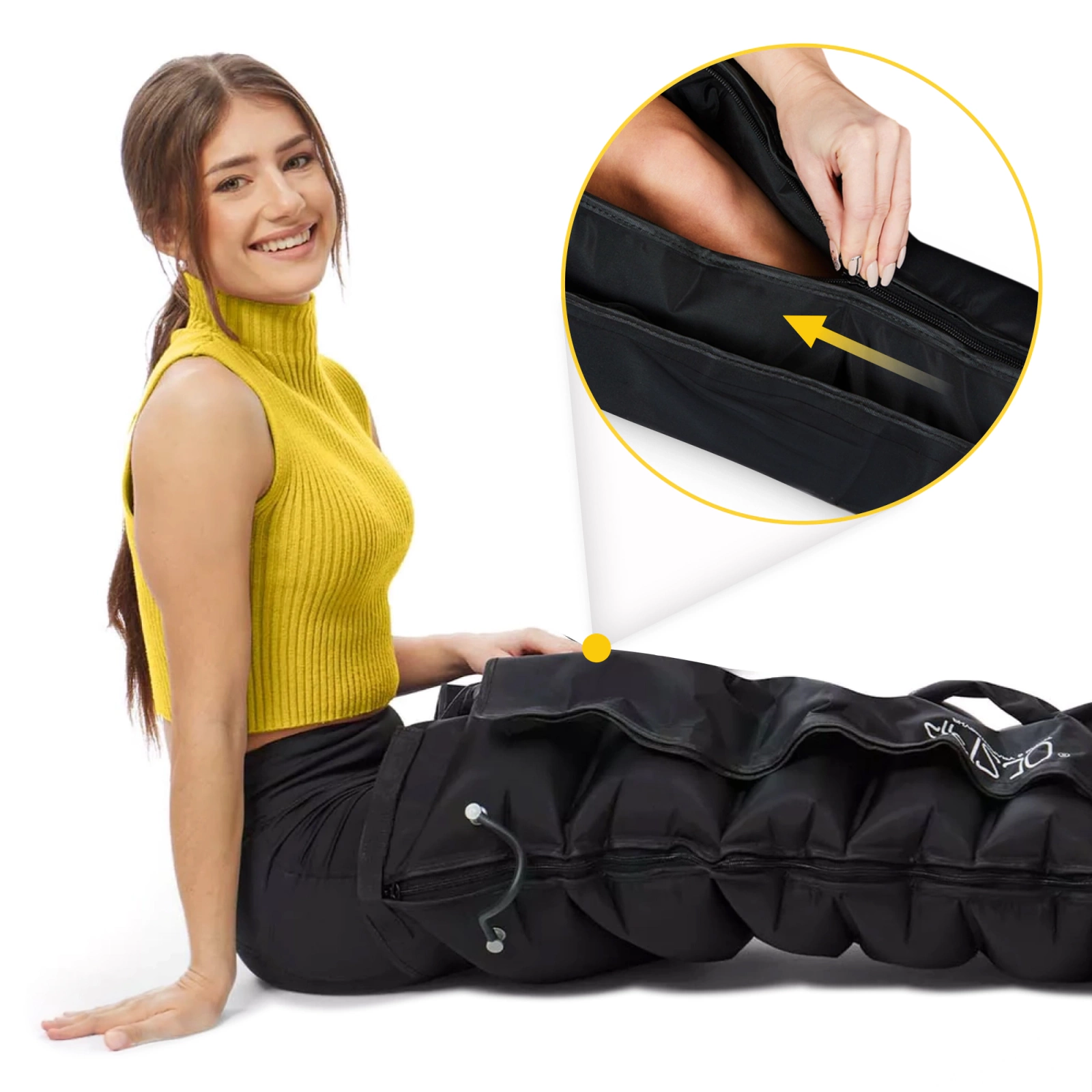 A nyirokdrenázs a test megfelelő összenyomásán alapul a mandzsettába pumpált levegő ereje által. Az ellenőrzött kompresszió serkenti a nyirokáramlást a nyirokcsomók felé, és javítja a vérkeringést. Ennek eredményeképpen a vízelvezetés: