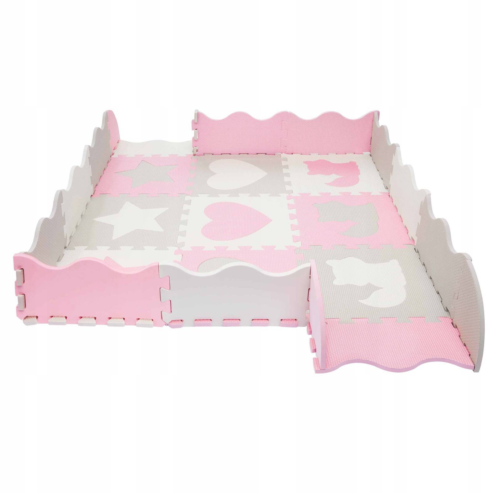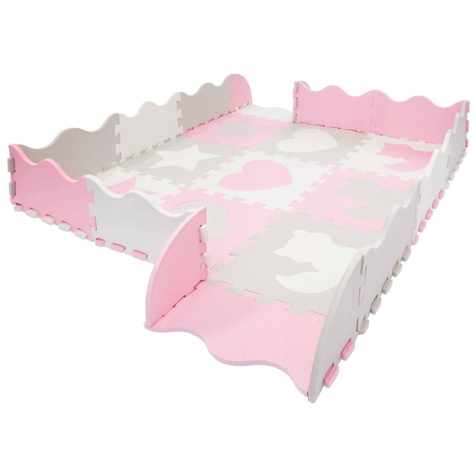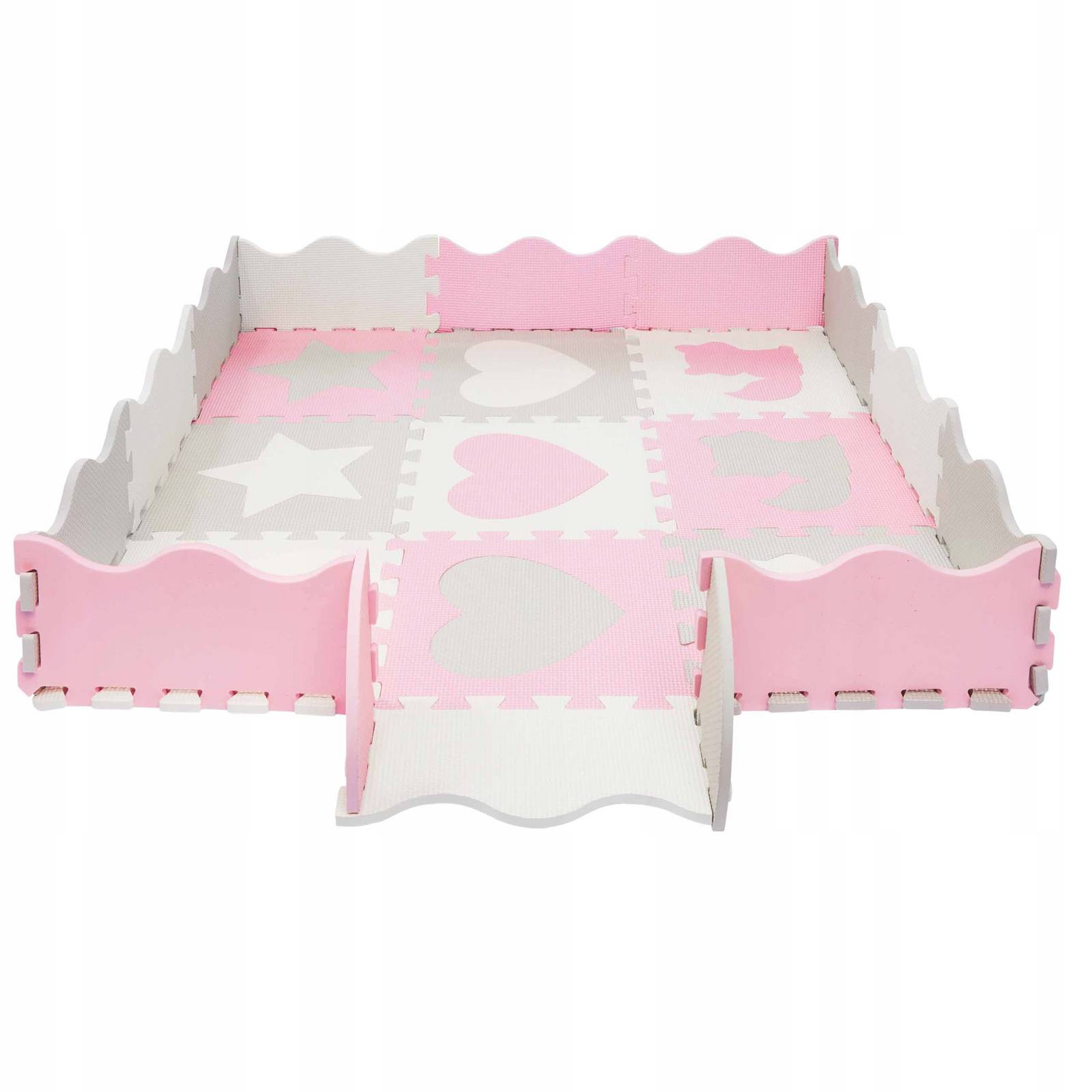 Gyerek oktató puzzle szőnyeg, 120 x 120 cm, rózsaszín