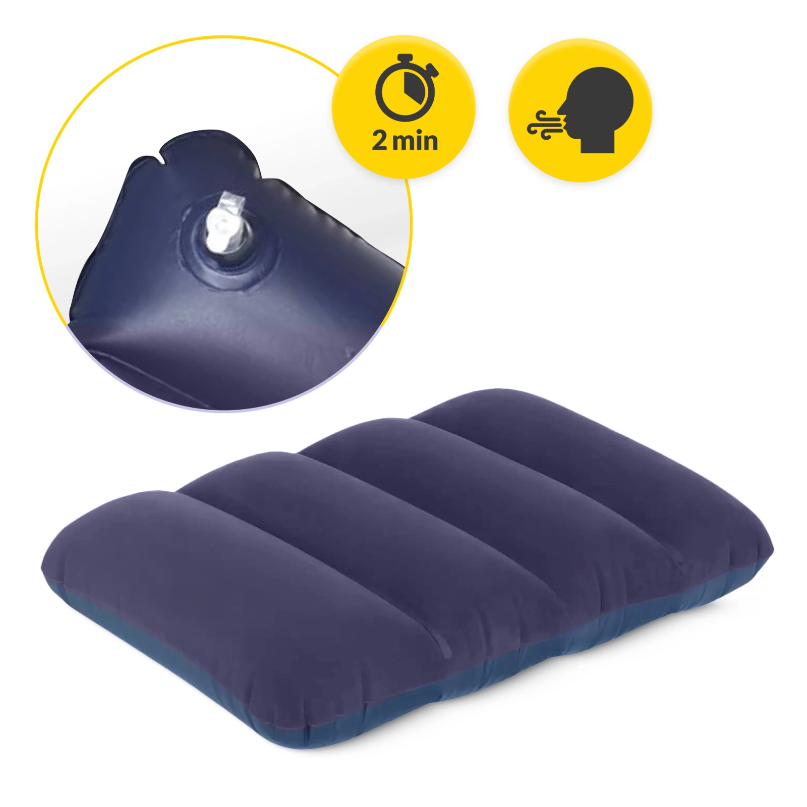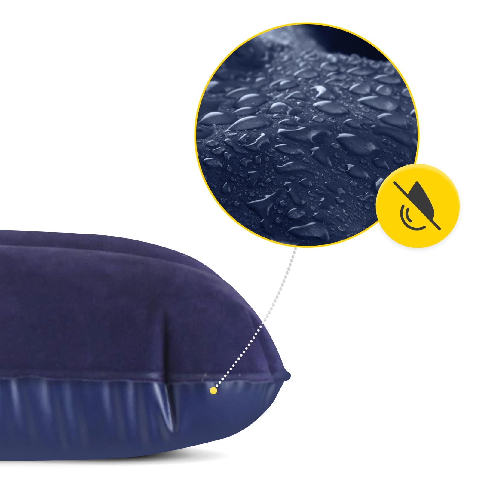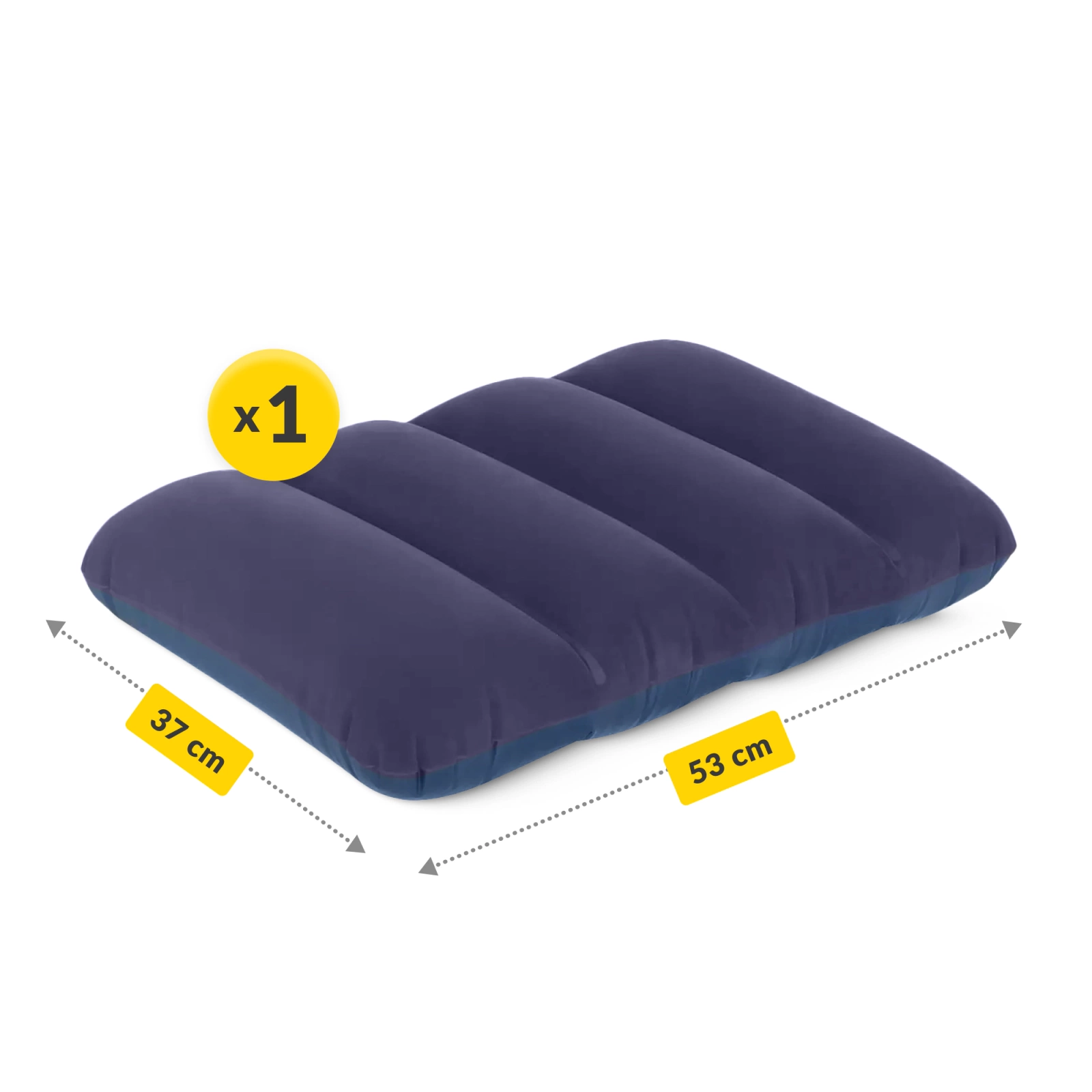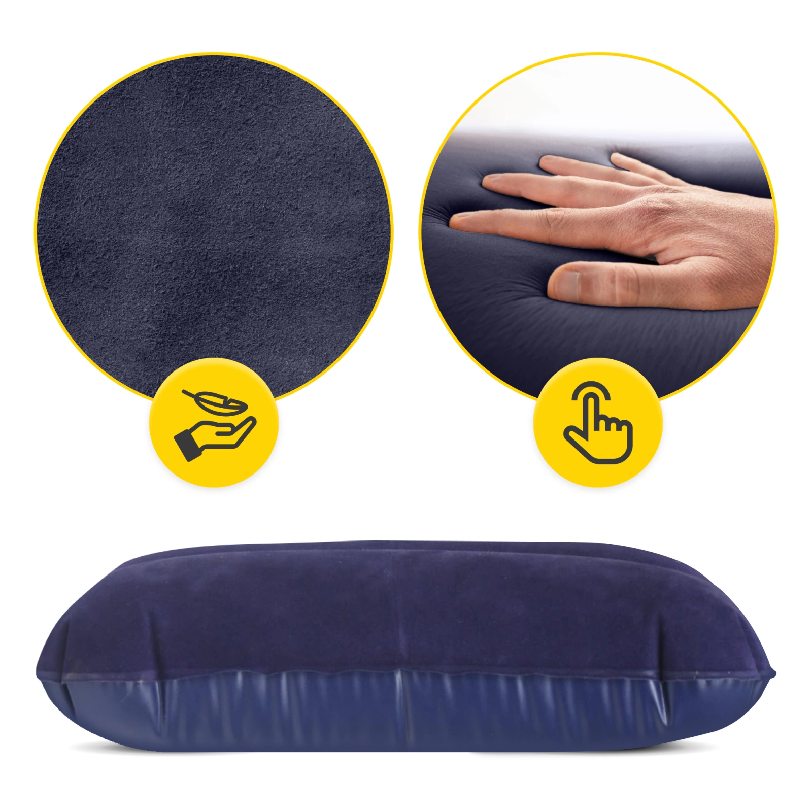 Az egyszemélyes felfújható alvópárna tartós anyagokból készült. Ezek hatékony védelmet nyújtanak a mechanikai sérülések ellen, és szigetelnek az egyenetlen talaj ellen. hajlékony szerkezete alkalmazkodik a fej alakjához, maximális kényelmet biztosít. A lekerekített élek növelik a kényelmet fekvés közben.A vízálló bevonatának köszönhetően a párna tökéletes az utazáshoz. Emellett puha velúr felülete kivételes puhaságot és pihentető pihenést biztosít még repülőút vagy vonatút alatt is.
