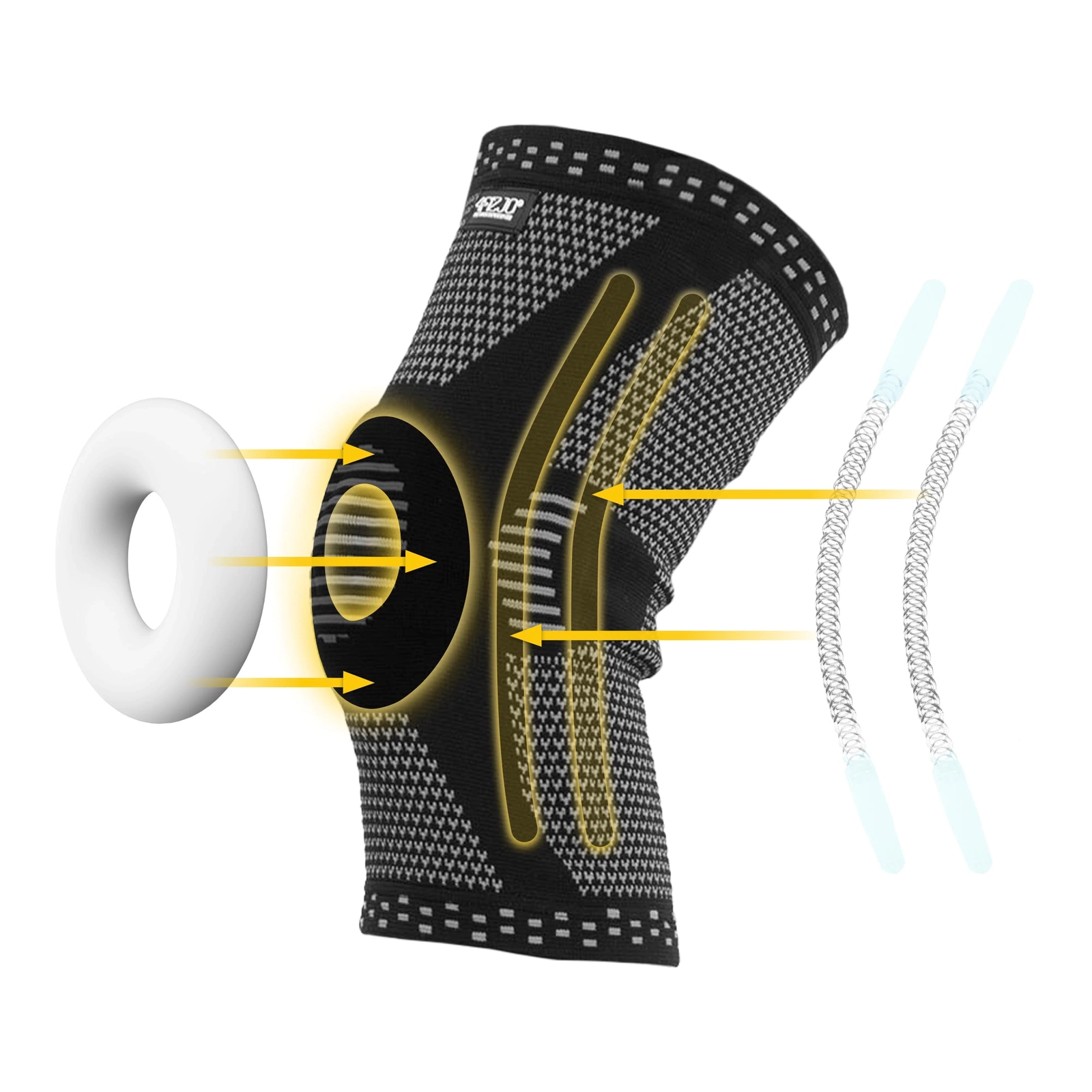 A térdmerevítő beépített gél gyűrűvel rendelkezik. Ez fontos szerepet játszik a patella stabilizálásában, minimalizálva a patella sérülés kockázatát. A rugalmas patella gyűrű illeszkedik a térd domborúságához. Ezáltal az ortopédiai segédeszköz viselése kényelmes és kényelmes. A rugalmas sín védi a térdet a hirtelen ízületi forgás hatásaitól. A sín A sín anatómiailag kontúros alakja lehetővé teszi a térd szabad hajlítását, anélkül, hogy nyomást gyakorolna az oldalszalagok. Ennek következtében ez a térdízületi ortézis megszünteti a kellemetlen érzést. A stabilizátor belső oldalán található szilikon bevonat hatékonyan megakadályozza, hogy a stabilizátor magától lecsússzon.