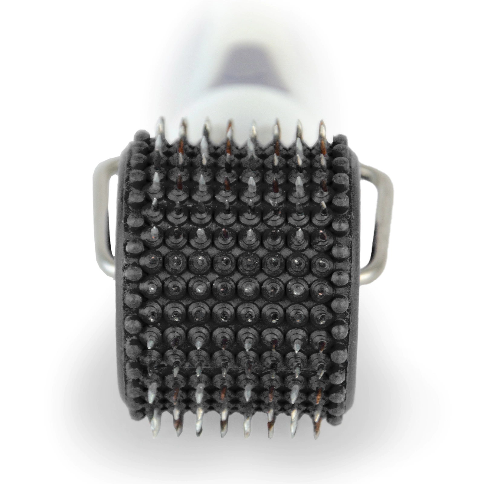 A masszázs során a henger finoman összenyomja a bőrt, stimulálva annak receptorait. Ez serkenti az idegrendszert és javítja a vérkeringést. Ennek eredményeképpen a masszázs felgyorsítja a gyógyulási folyamatot és enyhíti az izomfeszültséget. Mi több, az ezüst bevonatú fém tűk a bőrrel érintkezve észrevehetetlen galvanikus mikroáramokat hoznak létre, amelyek támogatják az anyagcsere-folyamatokat és hozzájárulnak a bőrsejtek jobb táplálásához. Emellett aktiválják a kollagén- és elasztin termelést, ami elősegíti a feszességet és a ráncok kisimulását. Fontos, hogy a masszázs csökkenti az izom feszültséget a nyak és az arc területén, segítve a kontúr javítását és a második áll megemelését.
