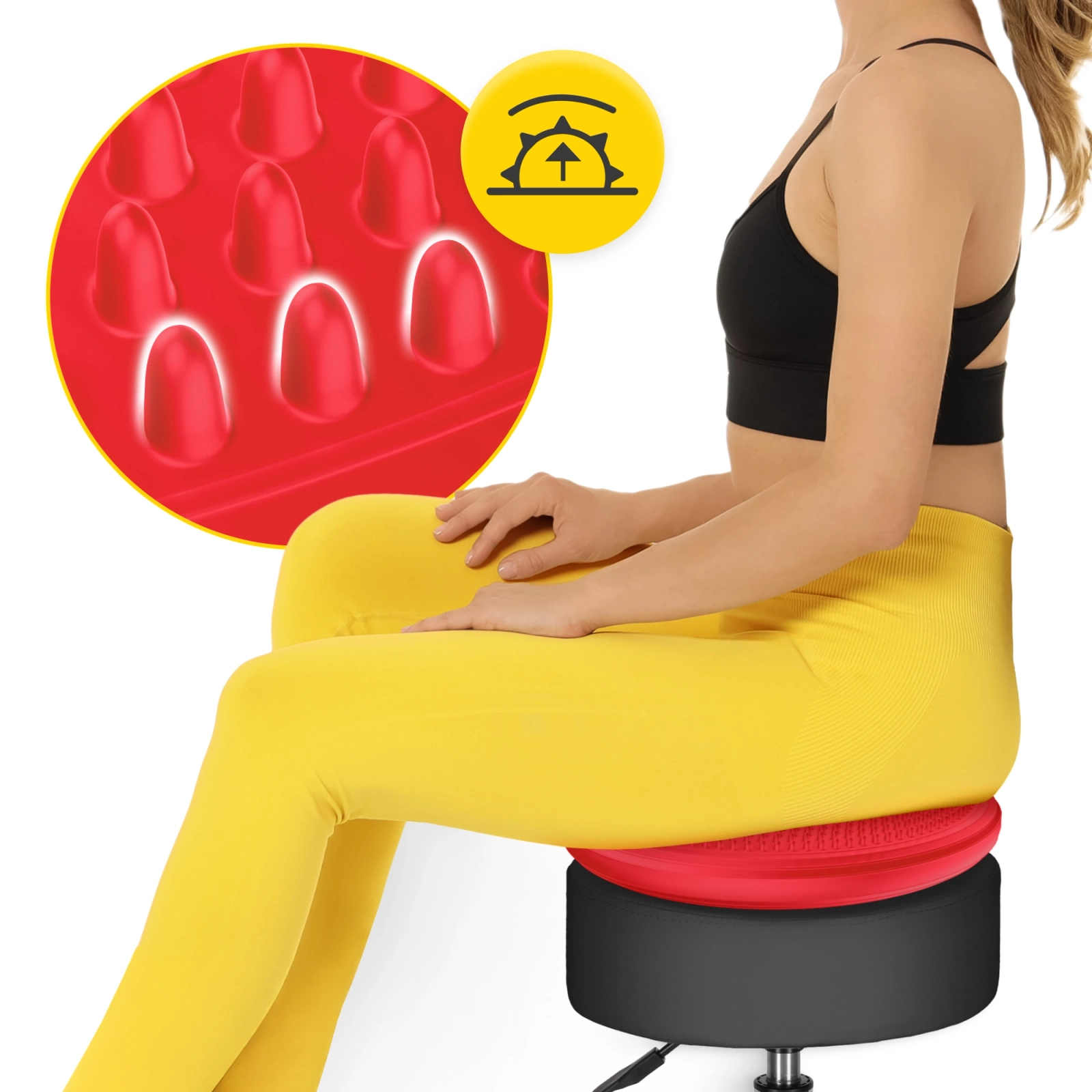 ✅ Erősíti a hátizmokat és stabilizálja a gerincet – a párnán való ülés közben a hasizmok folyamatosan aktívak, így segítik a helyes és egyenes testtartás fenntartását.