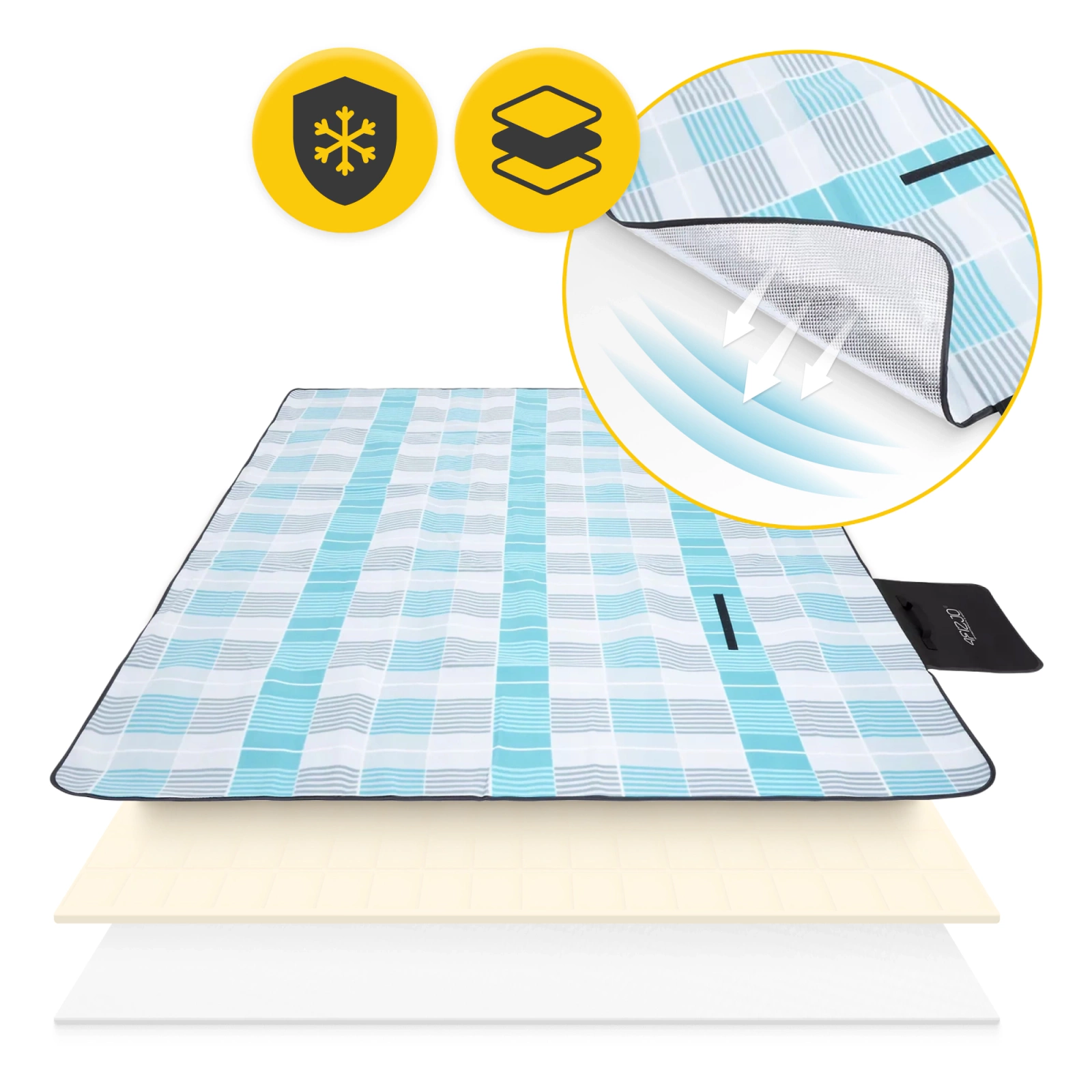 Szigeteléssel rendelkező piknik- és strandtakaró, 200 x 200 cm, kocka mintás
