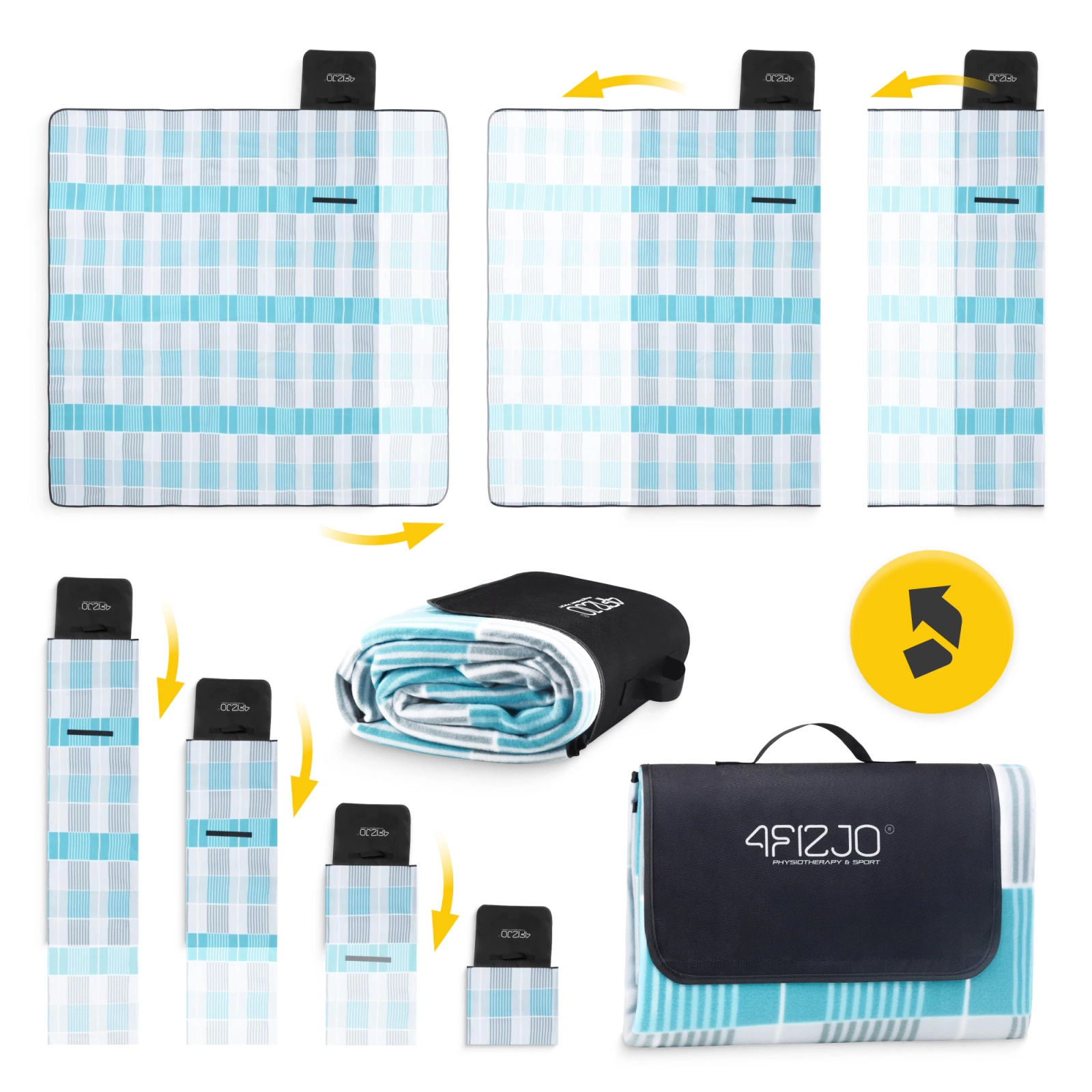 A 4FIZJO piknik takaró tökéletes társ minden kiránduláshoz. kompakt méreteinek köszönhetően bárhová könnyedén magával viheti. A strandszőnyeg egyszerűen összecsukható és feltekerhető.A kényelmes fogantyúkkal és vállpánttal könnyedén bárhová magával viheti. A 4FIZJO takaró könnyű és praktikus. Tudja meg, milyen könnyű minden utazásra magával vinni! A pikniktakaró kiváló választás, ha szereted: