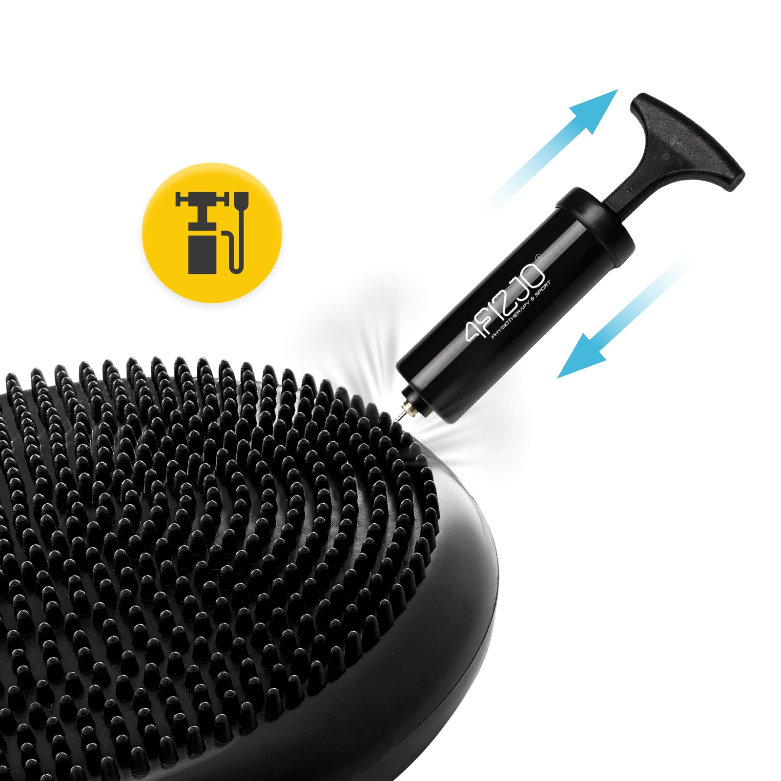 Hogyan kell helyesen felfújni a rehabilitációs párnát? Ahhoz, hogy erre a kérdésre választ adjunk, először érdemes megvizsgálni, hogy milyen szerepet tölt be a szenzomotoros korong a gyakorlatok során. Legyen szó ülésről, állásról, térdelésről vagy fekvőtámaszról, a párna legfontosabb feladata az, hogy kibillentse a testet az egyensúlyából. Éppen ezért a felfújás során két dolgot szükséges szem előtt tartani. Először is, fújd fel annyira, hogy amikor ráállsz, a talpadne érintkezzen a talajjal, azaz a párna biztosítsa a megfelelő instabilitást. Másodszor, ne fújd túl a párnát. Ha túlságosan fel van pumpálva, elveszíti a jellegzetes formáját, és korong helyett inkább labdára fog hasonlítani, ami csökkenti a hatékonyságát a gyakorlatok végzése közben.