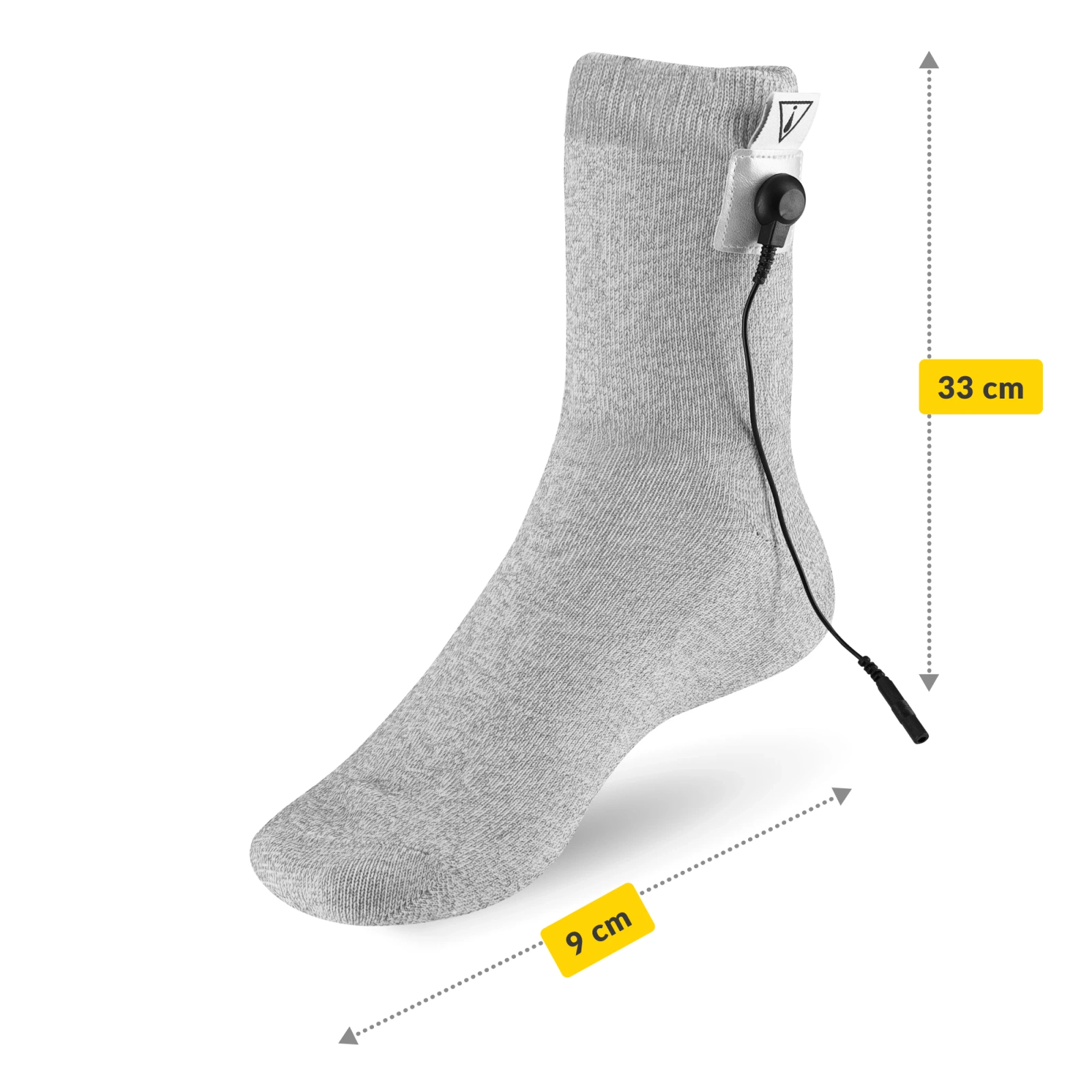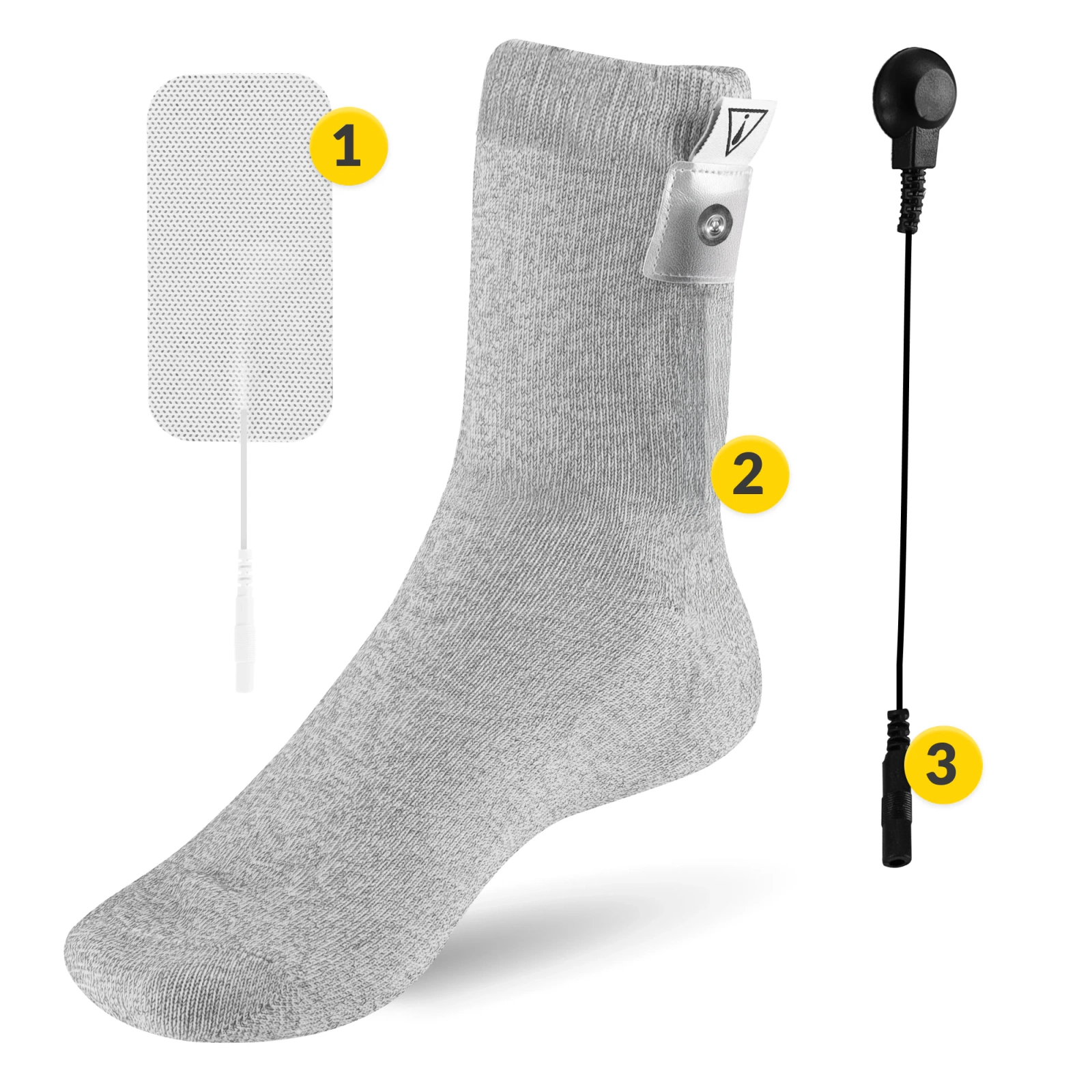 ➡️ A készletben található gélelektróda felhelyezése körülbelül. 4 cm-re a zokni felső szélétől.