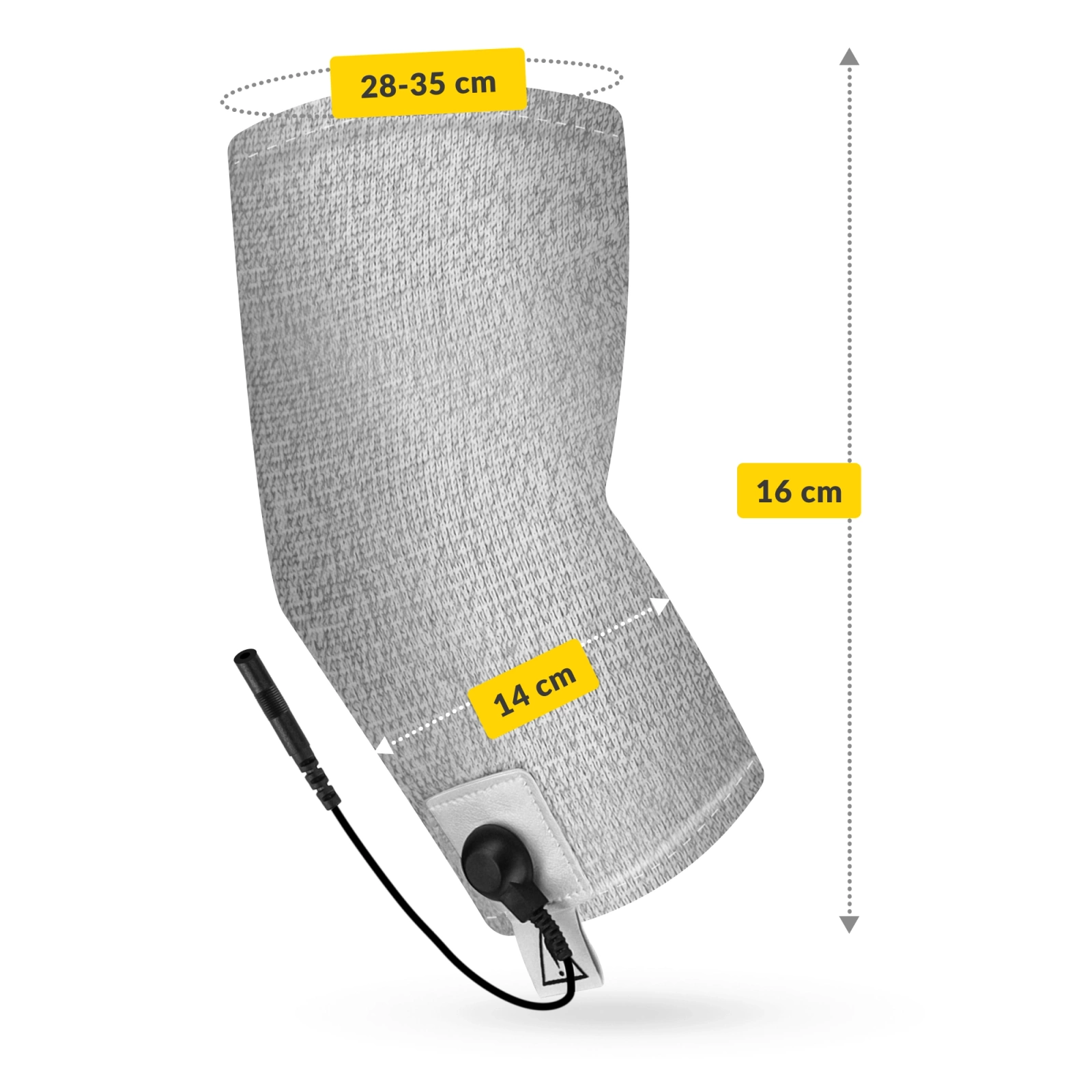 A 4FIZJO vezető kötés nagyon jó minőségű anyagokból készült. Az ezüstszálak kiváló vezető tulajdonságokkal rendelkeznek. Ennek eredményeként a könyökízületi merevítő egyenletesebb és hatékonyabb átvitelt biztosít az elektromos impulzusok számára.