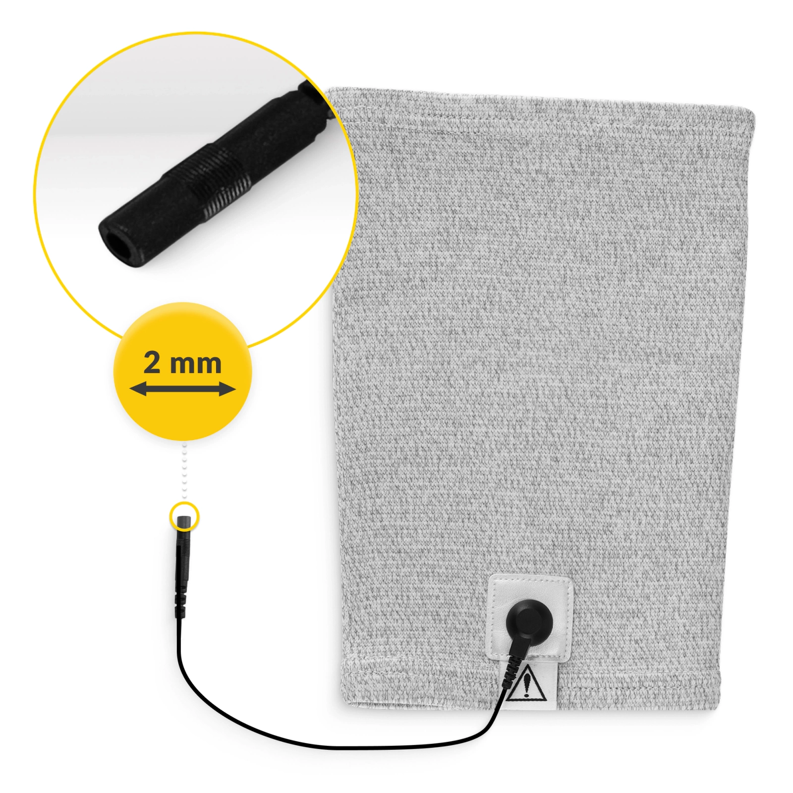 A 4FIZJO vezető kötés nagyon jó minőségű anyagokból készült. Az ezüstszálak kiváló vezető tulajdonságokkal rendelkeznek. Ennek eredményeként a térdmerevítő egyenletesebb és hatékonyabb átvitelt biztosít az elektromos impulzusoknak.