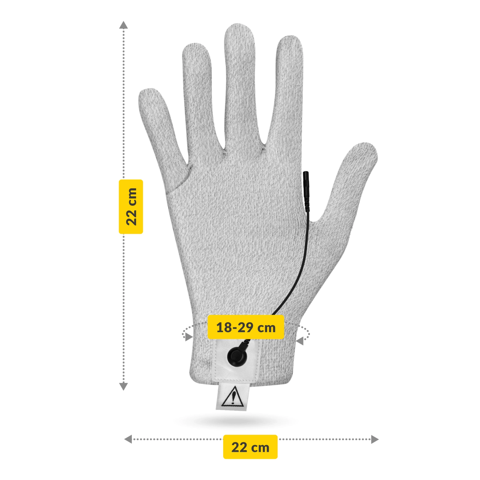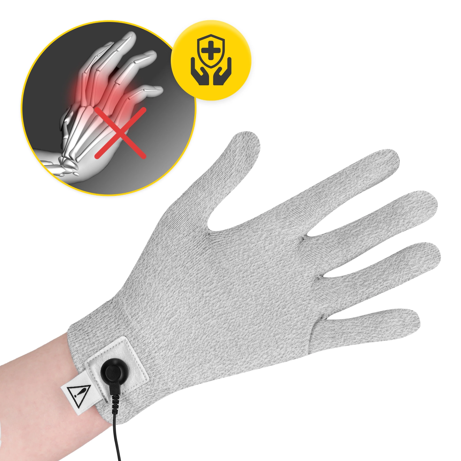 ALKALMAZÁS: A vezető kesztyűt a fájdalomterápiában, az idegek stimulálásában és a véráramlás fokozásában használják. Úgy tervezték, hogy a kézre lehessen alkalmazni. A TENS-áramokkal történő elektrostimuláció (transzkután idegstimuláció) klinikailag bizonyított, nem invazív és nem farmakológiai fájdalomcsillapító terápia. Az elektrostimulátor kis amplitúdójú elektromos impulzusokat küld a bőrön keresztül a perifériás idegekhez.